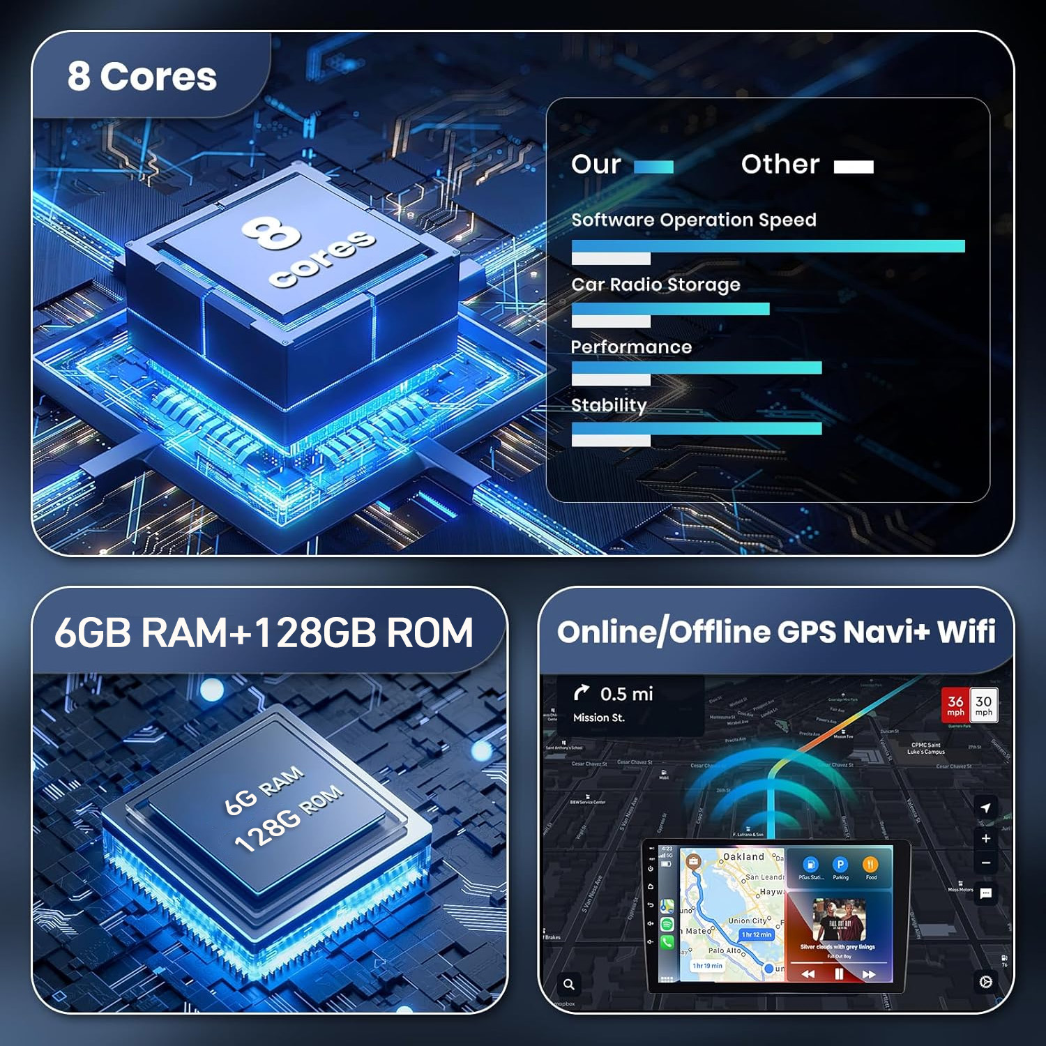 Upgrade your drive with this 9-inch 8-Core Android 14 car stereo.Powerful specs, smooth multitasking – without complexity.