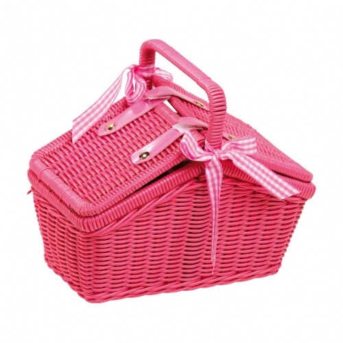 La frutta e il croissant possono essere divisi tramite una chiusura in velcro. Grazie alla sua lavorazione in vimini di plastica, il cestino è molto robusto.