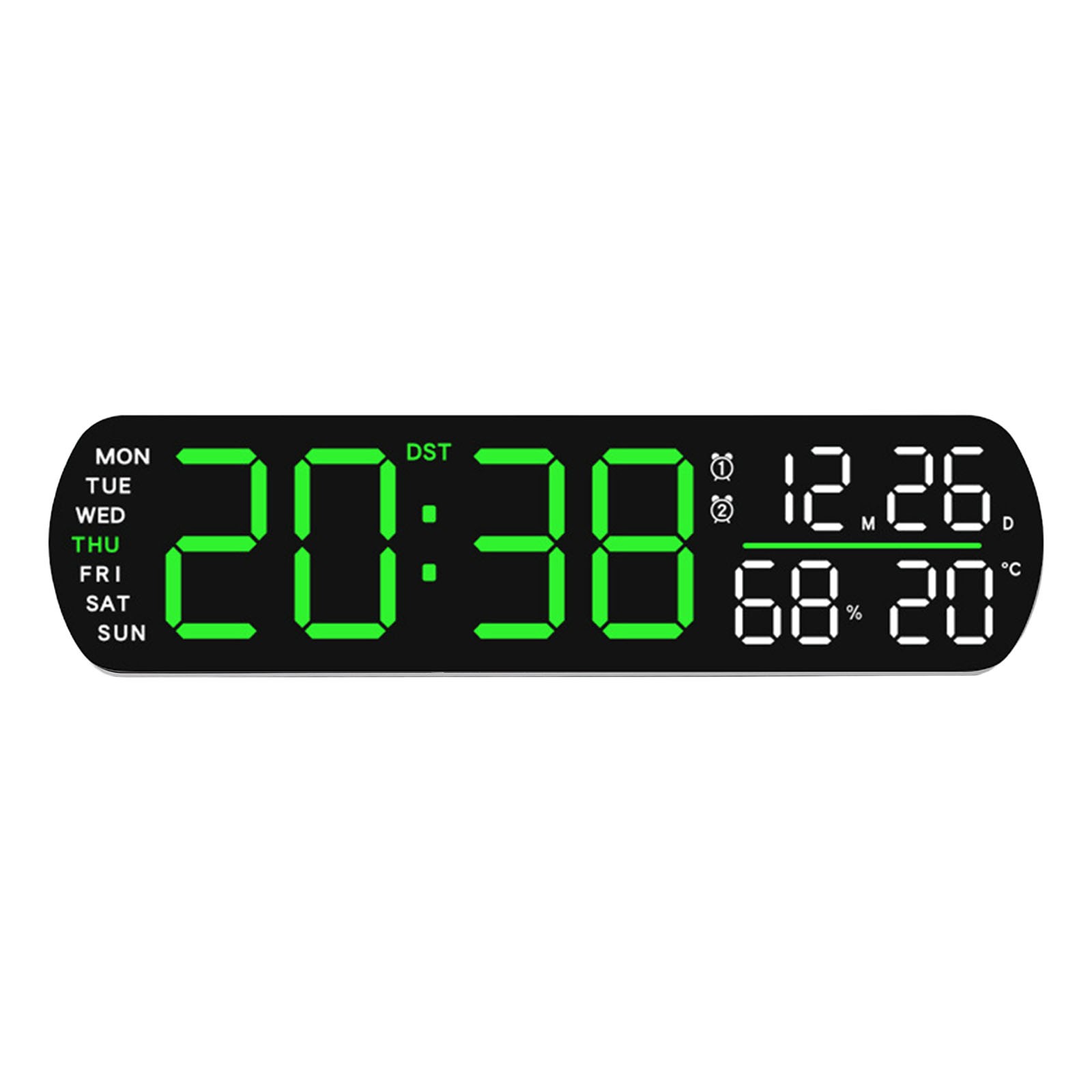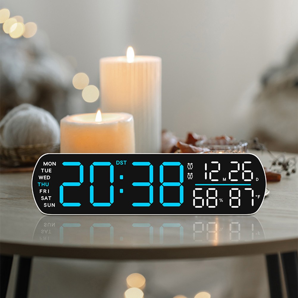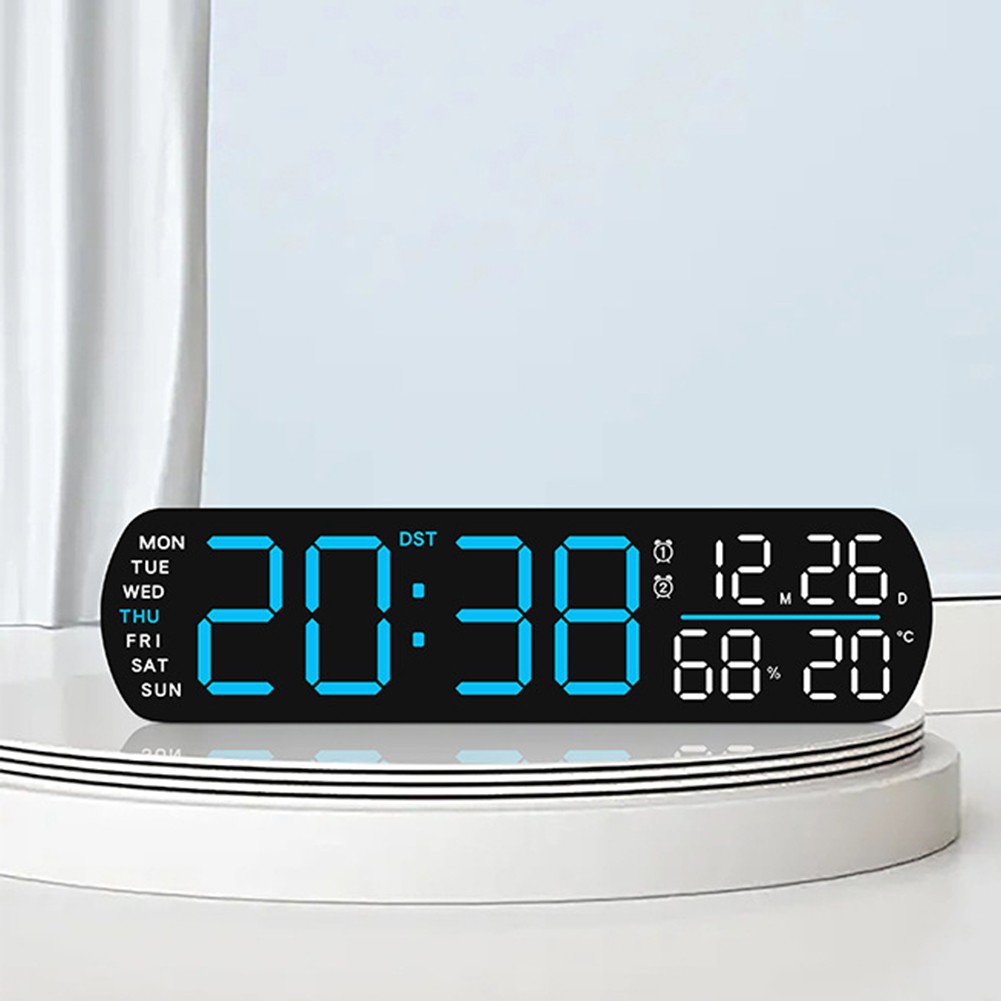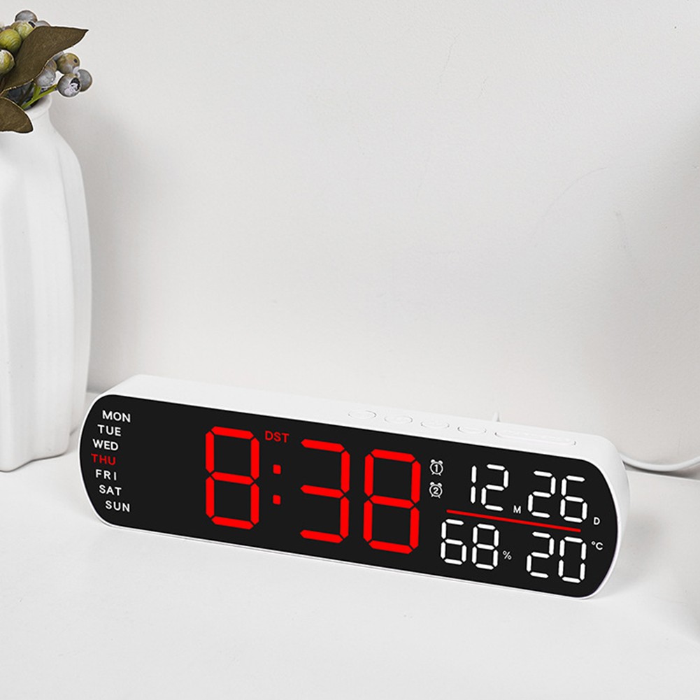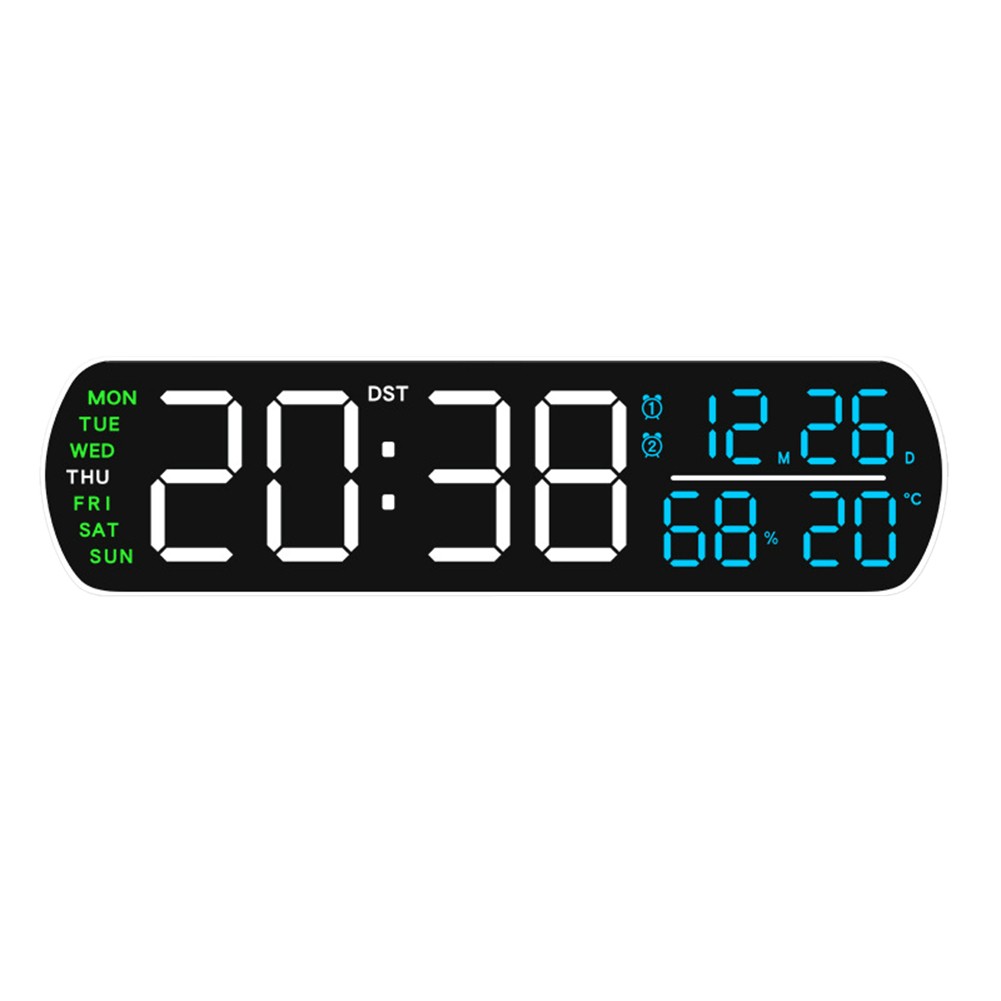Caractéristiques : *Affichage Complet : L'horloge numérique à DEL affiche l'heure, la date, le jour, la température et l'humidité tout sur un seul écran, offrant une vue d'ensemble complète d'un coup d'œil pour votre commodité. *Réglage de la Luminosité : Avec des réglages de luminosité automatique et manuelle, vous pouvez personnaliser l'affichage en fonction de votre environnement, garantissant une visibilité optimale pendant la journée ou la nuit. *Fonction Double Réveil : Dispose de deux alarmes séparées avec des options pour un seul ou double réveil, répondant à votre routine du matin et permettant une flexibilité pour les heures de réveil. *Options de Timing Polyvalentes : Inclut un minuteur compte à rebours qui peut être réglé jusqu'à 99 minutes et 59 secondes, parfait pour gérer les tâches ou cuisiner avec précision. *Alimentation Flexible : Fonctionne soit avec un câble USB DC5V soit avec trois piles AA (non incluses), offrant le choix de la source d'alimentation pour satisfaire besoins et garantir une fonctionnalité continue.