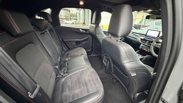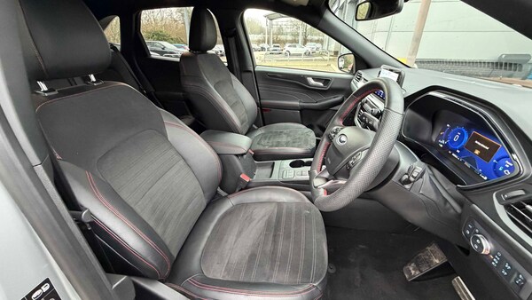 Full Service History, Partial Sensico - Rapton Cloth - Black with Red Stitching, Solar Silver, 10-Way Power Adjustable Drivers Seat, 2nd Row Sliding Seats, 8-Way Manual Passenger Seat including Lumbar Support and Height Adjust, Air Conditioning - Electronic Automatic Temperature Control - EATC, Aluminium Foot Pedals - ST-Line Design, Ambient Lighting, Auto Dimming Rear View Mirror, Auto Wipers, Centre Console with Electronic Parking Brake, Driver and Passengers Sun Visor with Illumination, Electrical Charging Point in Second Row, Front Seats - 2-Way Manual Height Adjust Passive Head Restraints, Front Seats - Drivers and Passengers Seatback Map Pockets, Front and Rear Floor Mats with Red Stitching, Full Digital 12.3in Instrument Cluster, GEO Awareness - Providing Details of ULEZ Within the Satellite Navigation, Gearshift - Automatic - Electronic Rotary Gearshift Dial, Glovebox Lights, Handsfree Power Tailgate, Headliner - Sports Dark, Heated Driver and Passenger Seats, Heated Rear Seats, Heated Steering Wheel, Load Compartment - Lights, Load Compartment - Tie Down Hooks, Load Compartment Carpet, Lower Door Frame Beltline - Black, Mini Overhead Console with Sunglasses Holder Bin, MyKey, Rear Duct on B-Pillar, Rear Seat - 60-40 Split Folding Seats, Rear Seat Centre Head Restraint, Rear Seats - 2-Way Head Restraint Up-Down, Rear Seats - Folding Centre Armrest with Integrated Cup Holder, Rear Seats - Sliding Seat Adjust Tracks - Fore-Aft, Remote Tailgate Release, Removable Package Tray, Single Rear Fog Light, Sports Seats, Steering Column - Rake and Reach Adjustment, Steering Wheel - ST-Line Sports-Style Perforated Sensico-Trimmed with Red Stitching, Upper Door Frame Beltline - Black, Winter Pack, 12V Power Point in Floor Console, 12v Power Point in Cargo Area, 12v Socket - Voltage Regulator, Acoustic Vehicle Alert System - AVAS, Automatic Headlights with Auto High-Low Beam, Cruise control with speed limiter, EPAS - Electric Power Assisted Steering, Ford SYNC3 DAB Navigation System, Front and Rear Parking Sensors, Full LED Headlamps, Headlights - Automatic Follow Me Home Lighting, Headlights - Levelling System - Manual, Headlights - Unique Bending, High-Mounted Brake Light, LED Daytime Running Lights, LED Fog Lights - Front, Pre-Collision Assist with Autonomous Emergency Braking, Rear Lights - LED, Rear View Camera, Selectable Drive Modes, Standard Home Charging Cable - 3-Pin Domestic Socket 230V, Suspension - Sports, Trip Computer, Tyre Pressure Monitoring
