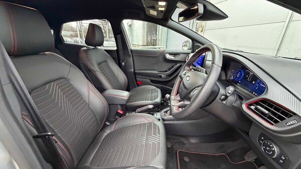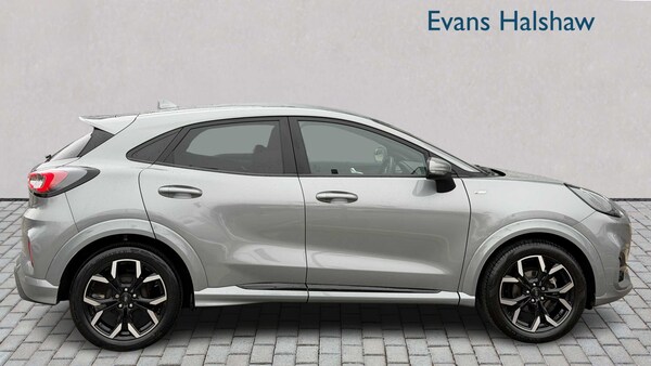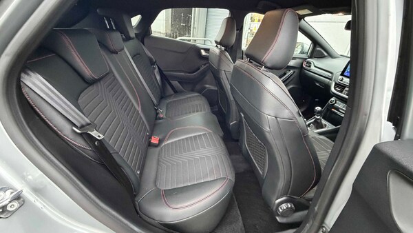 18in Alloy Wheels - 5-Spoke - Matt Black Machined Finish, Acoustic Laminated Windscreen, Active Grille Shutter, Ecoboost Hybrid Tailgate Badge, Electric Windows - Front and Rear, Front Bumper - Unique ST-Line Sport Design - Body Colour, Large Rear Spoiler - Body Colour with Centre High Mounted Stop Light, Locking Wheel Nuts, Lower Bodyside Moulding - Body Colour, Power-Foldable Heated Door Mirrors with Puddle Lamps, Privacy Glass, Puma Badge, Quickclear Heated Windscreen, Rear Bumper Body Colour - Diffuser, ST-Line Badge, ST-Line Body Styling Kit, Tailgate - Manual, Tyre Inflation Kit, ABS - Anti-lock Braking System, ESC - Electronic Stability Control and Hill Start Assist, Emergency Brake Warning - Automatic Hazard Warning Lights, First Aid Kit Strap, Lane Keeping Aid with Lane Departure Warning, Post Collision Braking, Remote Central-Double Locking, Thatcham Alarm, Traction Control and Emergency Braking Assistance, Automatic Headlights with Rain-Sensing Wipers and Auto High Beam, B&O Premium Audio System and Ford SYNC 3 Navigation, Cruise Control with Intelligent Speed Assist, Front Fog Lights, Intelligent Speed Assistance, LED rear lights, Power Steering, Pre-Collision Assist with Autonomous Emergency Braking and Pedestrian-Cyclist Detection, Projector Headlamps with LED Daytime Running Lights, Rear Parking Sensors, Selectable Driving Modes - Normal - Eco - Sport - Slippery and Trail, Speed Limiter, Sports Suspension, Trip-Fuel Computer, Tyre Pressure Monitoring System - TPMS, Wireless Charging Pad with Electronic Air Temperature Control EATC, Automatic Dimming Rear View Mirror, Carbon-Look Interior Deco Spears, Centre Console - Premium with Openable Stowage Area with USB Connectivity - 2 Cupholders and 12v Power Point, Courtesy Lights - Ambient LED Courtesy Lighting - Single Colour, Drivers Manual 4-Way Seat Adjustment with Manual Lumbar Adjust, Electronic Air Temperature Control - EATC, Ford MegaBox Extended Bootspace, Ford Power Starter Button, Front Floor Mats, Front Seats - Sports Style, Full Digital 12.3in Instrument Cluster, Gear Knob - Aluminium, Handbrake - Black Sensico Trimmed with Stitching, Headliner - Deluxe, Instrument Panel - High Level, Passenger 4-Way Seat with Lumbar Adjustment, Rear Seats - 2-Way Head Restraint Up-Down, Rear Seats - Second Row 60-40 Folding Seats, Restrain Device Pack, ST-Line Flat-Bottomed Leather Steering Wheel with Unique Red Stitching, Soft-feel Gearshift Boot with Red Stitching