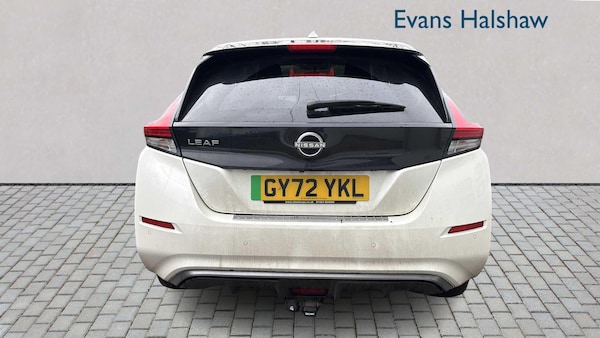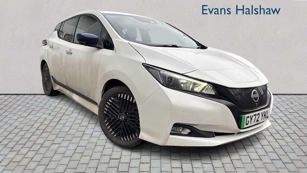 17in Alloy Wheels - Black Diamond Cut, Body Coloured Door Mirrors, Charging Port Remote Opening, Door Handles - Chrome, Front Electric Windows, Integrated Turn Signals in Mirrors, Rear Bumper Finisher - Grey, Rear Privacy Glass, Roof Spoiler - Aero, 50kW CHAdeMO Quick Charger, 6.6kW AC On Board Charger, 6m Type 2 Cable, 8in Colour Display with Touch Screen, Android Auto and Apple CarPlay, Audio System with 6 Speakers, Blind Spot Intervention, Bluetooth with Audio Streaming, Digital Radio - DAB, E-Pedal, EV Connect Telematics System, Electric Power Steering, Energy-Saving Cabin Heating System with Heat Pump, Front Fog Lights, Headlights - Follow Me Home Function, Headlights - High Beam Assist, Intelligent Auto Headlights, Intelligent Cruise Control, LED Signature Daytime Running Lights, LED Signature Tail Lights, Lane Departure Warning, MacPherson Strut Front Suspension and Twist Beam Axle Rear Suspension, Navigation System with Voice Control, NissanConnect Services App, Rear USB Ports, Shark Fin Antenna, Speed Limiter, TPMS - Tyre Pressure Monitoring System, USB Port, 6 Airbags, ABS with EBD and Brake Assist, Alarm - Thatcham, Auto Hazard Lights, ESP - Electronic Stability Programme, Electrically Driven Intelligent Braking System, Hill Start Assist, ISOFIX on Rear, Immobiliser, Intelligent Emergency Braking with Pedestrian Recognition, Intelligent Key with Start Push Button, Intelligent Lane Intervention, Intelligent Ride Control, Intelligent Trace Control, Rear Cross Traffic Alert, Rear Door Child Locks, Remote Central Locking with Deadlocking, 7in Combimeter, Auto Dimming Rear View Mirror, Automatic Climate Control with Pollen Filter and Timer, Heat Pack, Illuminated Charge Port, Leather Steering Wheel, Multifunctional Steering Wheel, Rain sensing windscreen wipers, Tech Pack, Telescopic Steering Wheel Adjustment