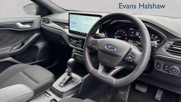 Blind Spot Information System, Chrome Blue, Cloth - Black with Red Stitching, Driver Assistance Pack, Parking Pack, Hands-free Tailgate, Winter Pack, 17in Alloy Wheels - 5-Spoke with Rock Metallic Finish, Door Mirrors - Electrically-Operated - Heated - Power-Foldable - Puddle Lights - Side Indicators, Electric Windows - Front, Polished Twin Tailpipe, Quickclear Heated Windscreen, Rear Privacy Glass, Unique ST-Line Grille and Full Bodystyling Kit - Large Body Coloured Rear Spoiler, Polished Twin Exhaust Tailpipe, 4.2in Colour TFT Ice Blue Illumination Analogue Cluster with Trip Computer, Cruise Control with Adjustable Speed Limiter, Ford SYNC4 Navigation with 13.2in Touchscreen, FordPass Connect, Full Fixed LED Headlight with LED Daytime Running Lights, Parking Sensor - Front and Rear, Power Steering, Pre-Collision Assist with Autonomous Emergency Braking and Pedestrian-Cyclist Detection, Rear Lights - LED, Selectable Drive Mode, Sports Tuned Suspension, 13.2in Touchscreen with SYNC4 Navigation, ABS - Anti-lock Braking System, Airbags - Driver and Front Passenger, Ford Key Free System - Keyless Entry with Keyless Start, Lane-Keeping Aid with Lane-Keeping Assist, Thatcham Category Alarm with Power Door Deadlocks, DEATC - Dual-Zone Electronic Automatic Temperature Control, Front Seat - Passenger 2-Way Manual Adjustment, Seats - Drivers 4-Way Manual Adjustment, Drivers Manual 4-Way Seat Adjustment with Manual Lumbar Adjust, Dual-Zone Electronic Air Temperature Control - DEATC