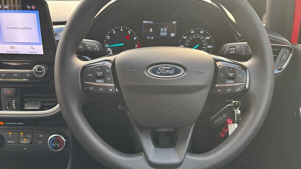 Cloth - Black with Metal Grey Stitching, Race Red, 15in Structured Steel Wheels - 10-Spoke with Sparkle Silver Cover, Active Grille Shutter, Body Colour Bumpers, Door Handles - Body Colour, Door Mirrors - Heated - Electric - Integrated Side Indicators - Body Coloured, Front Upper Grille - Self Colour - Mesh Design, High Gloss Chrome Grille Surround, Locking Wheel Nuts, Quickclear Heated Windscreen, Rear Bumper - Body Coloured Upper and Self Colour Lower, Tailgate Handle - Body Colour, Tyre Repair Kit, Windows - Electrically-Operated Front with One-Touch Lowering-Closing on Drivers Side, Wipers - Standard with 6 Speed Interval Settings, 4.2in TFT Ice Blue Illumination Analogue Cluster with Trip Computer, Cruise Control with Adjustable Speed Limiter, EPAS - Electric Power Assisted Steering, Ford SYNC2.5 without Navigation or Embedded Voice Control and Embedded Modem, Headlights - Automatic, LED Headlights with Daytime Running Lights and Integrated Fog Lights, Rear Lights - Non-LED - Splite, Standard Duty Suspension, Trip Computer, Tyre Pressure Monitoring System - TPMS, Air Conditioning - Manual, Auto Dimming Rear View Mirror, Cargo Area Cover, Centre Console - Open Stowage Bins and 12V Front Power Point and 3 Cupholders - 2 Front - 1 Rear, Courtesy light - For Front Passengers-Overhead Halogen, Floor Mats - Front Velour, Front Seat - Driver 4-Way Manual Adjust, Front Seat - Passengers Manual Fore-Aft Adjustment, Front Seats - Comfort Style, Gearshift Knob - Polyurethane, Handbrake - Black, MyKey, Rear Fog Lamps, Rear Seat - 60-40 Split Back and Cushion, Rear Seat Centre Headrest, Rear View Mirror, Seats - Front Passenger 2-Way Adjustment, Steering Column - Rake and Reach Adjustment, Steering Wheel - 3-Spoke Polyurethane, Windows - Rear Manual, Wipers - Automatic with Rain Sensor, Airbags - Driver and Front Passenger, Airbags - Front Side Impact, Airbags - Side Curtain, Anti-Lock Braking System - ABS with Electronic Brake Force Distribution - EBD, Emergency Brake Warning - Automatic Flashing of Brake Lights Under Heavy Braking, Enhanced Electronic Stability Control - ESC with Traction Control - Emergency Brake Assist - EBA - Hill Start Assist - HSA, Ford Easy-Fuel Capless Refuelling System, IPS - Intelligent Protection System, Lane-Keeping Aid with Lane-Keeping Assist, Remote Central-Double Locking, Seats - ISOFIX Mounting Provision for Child Seats, Tailgate Wash-Wipe, Thatcham Category Alarm with Power Door Deadlocks
