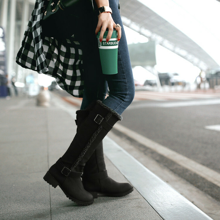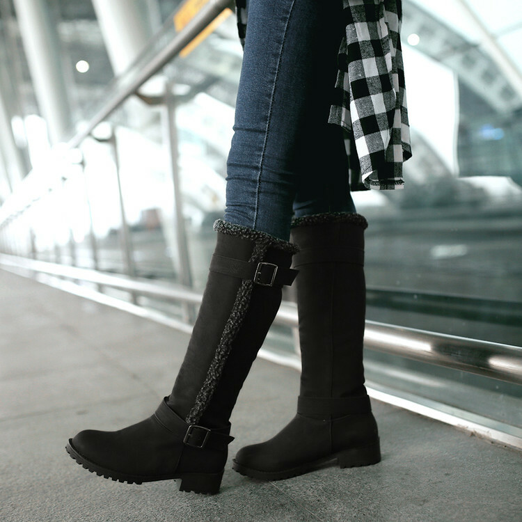 Women Knee High Boots Winter Warm Snow Boots Buckle Fashion Casual Shoes Size