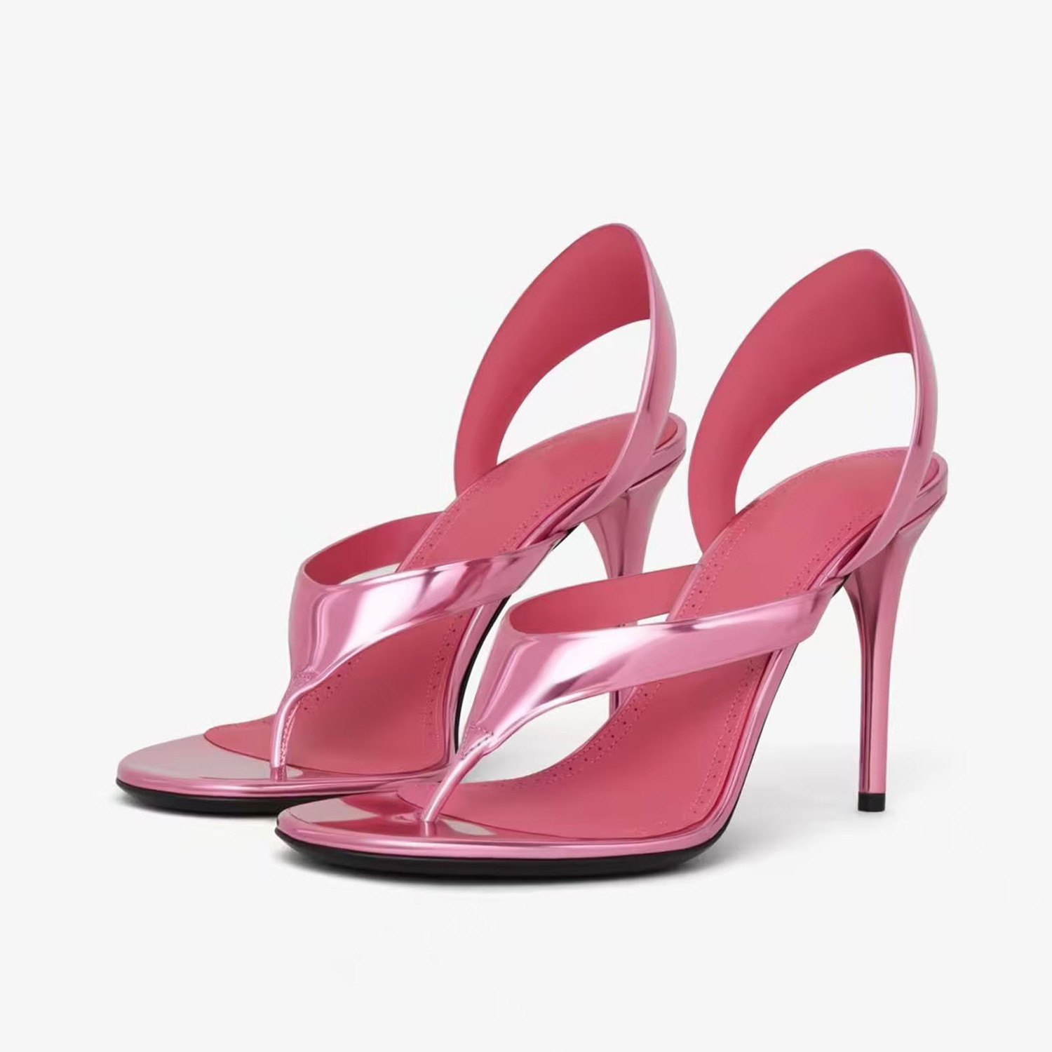 Womens New Patent Leather Round Toe Sandals Thin Heels Back Strap High Heels