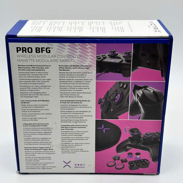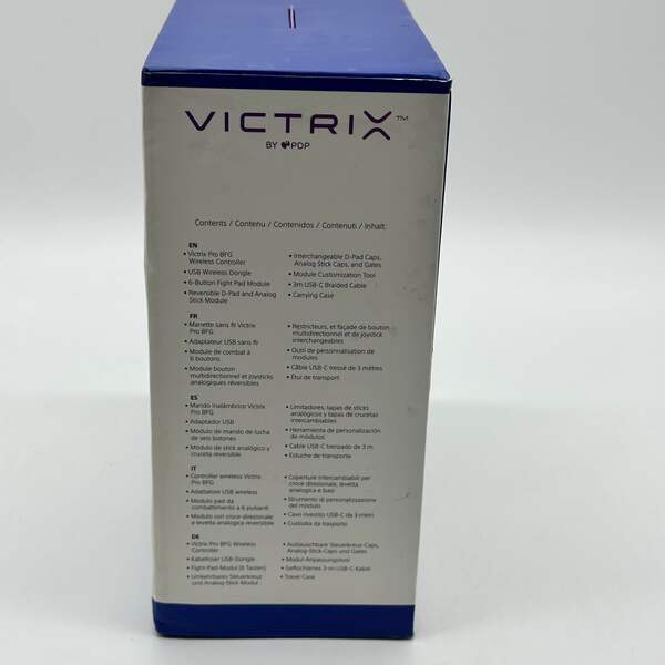 The Victrix Gambit Tournament Controller is in excellent condition, with no signs of wear. The multi-colored design allows for personalization and makes it a standout piece in any gaming setup.