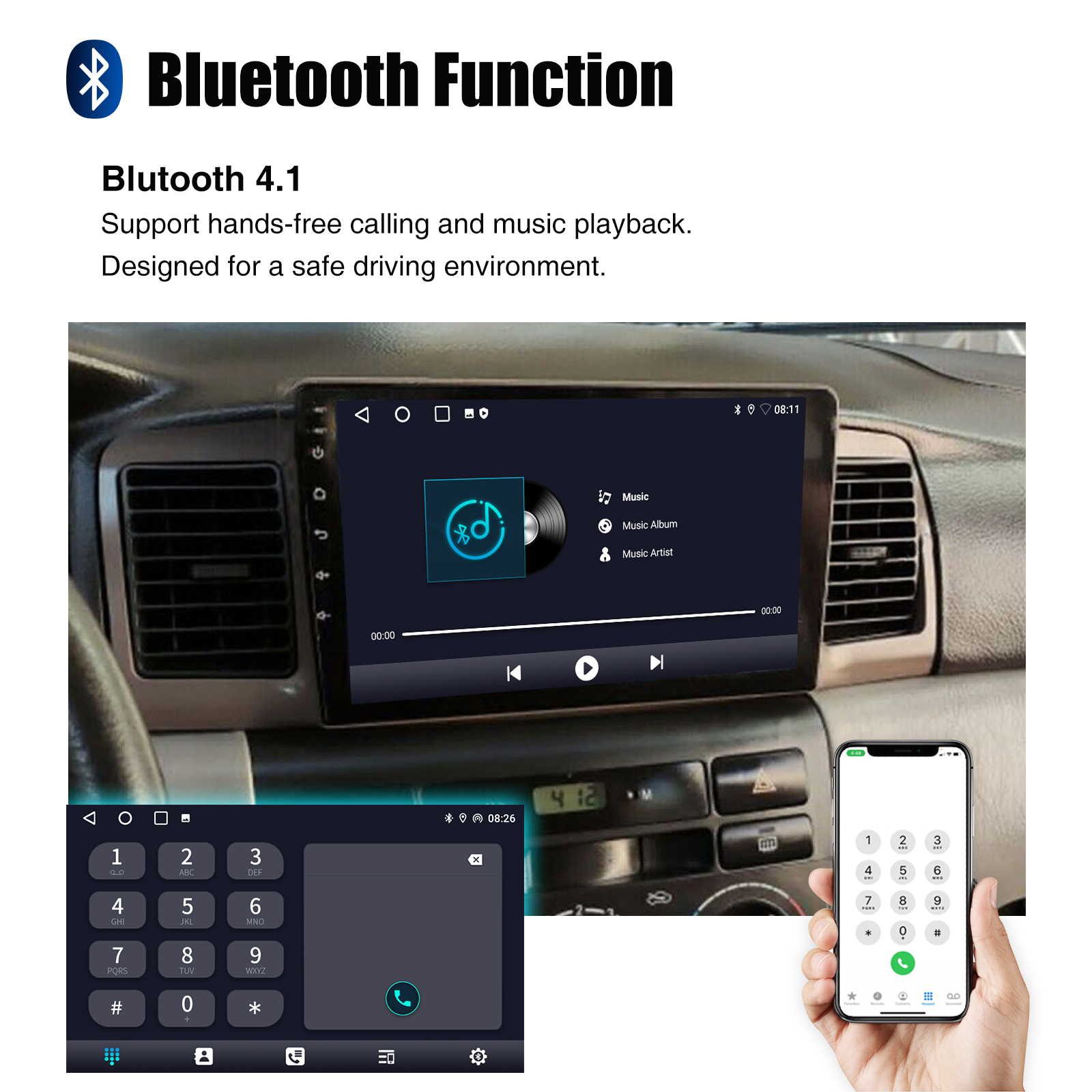 RDS/FM Radio & Bluetooth & ASP Sound Setting: Supports Bluetooth 4.1, with built-in microphone so you can make hands-free calls while driving. Support access to phone book, music playback interface, etc. RDS supported. You can save 18 FM radio stations. Built-in ASP chip. Supports 32-band EQ setting, which can be adjusted according to your personal preference. Which is very similar to your original sound. 4 x 45W amplifier, surround sound and subwoofer output
