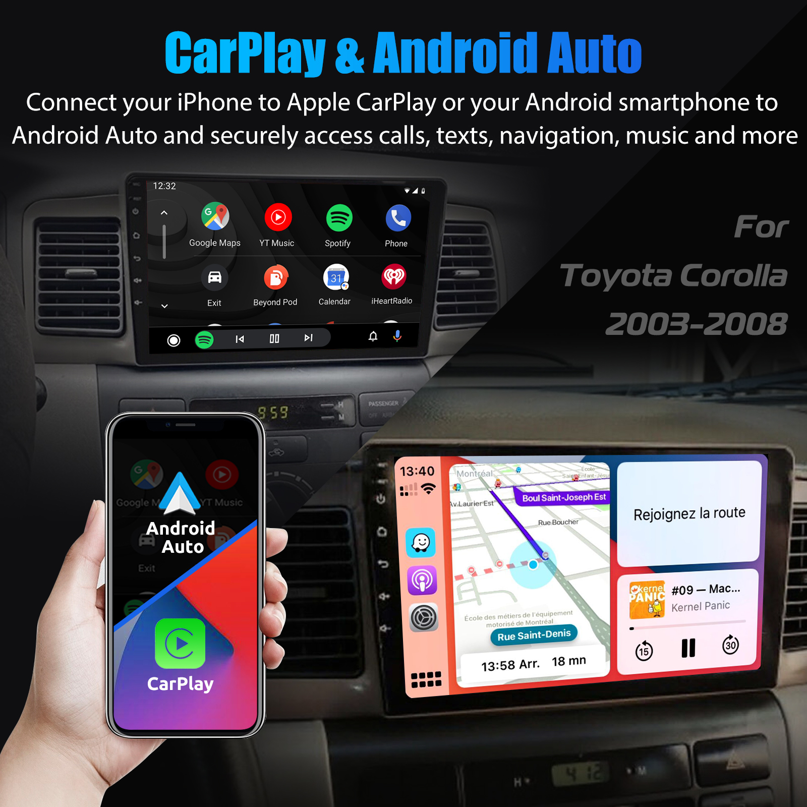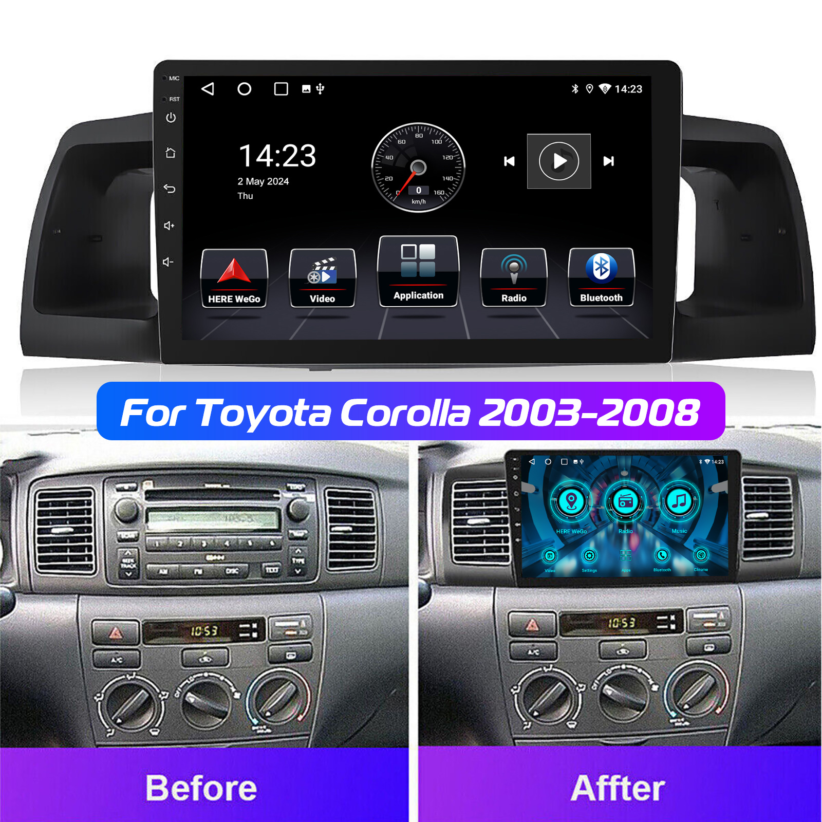 9 Inch Android 15 Car Radio For Toyota Corolla (2003-2008): The