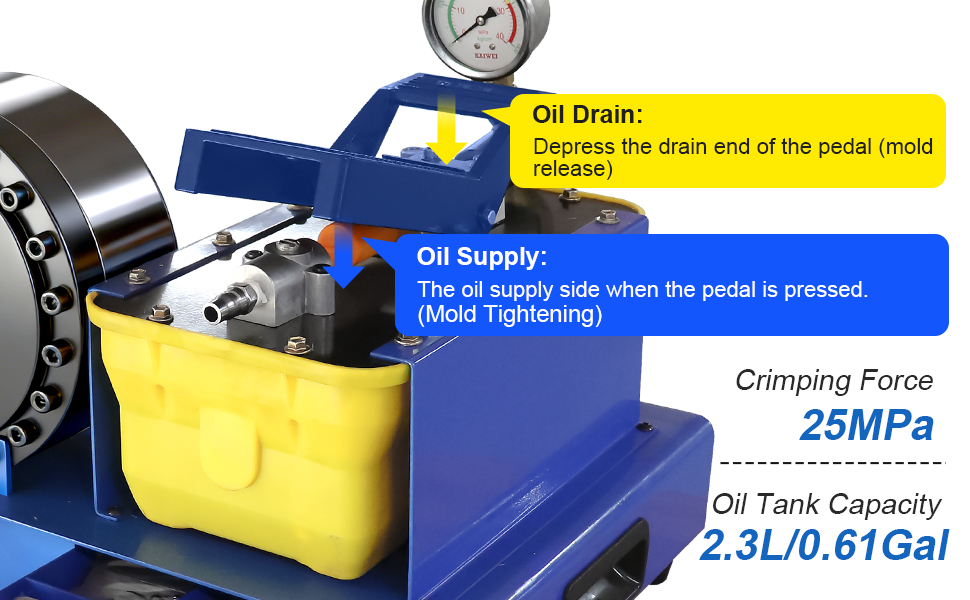 Pneumatic Drive System: Connects to shop air supply or portable air compressor via 0.31" air inlet. Adjustable pressure regulation ensures stable, efficient operation at optimal 40MPa system pressure.