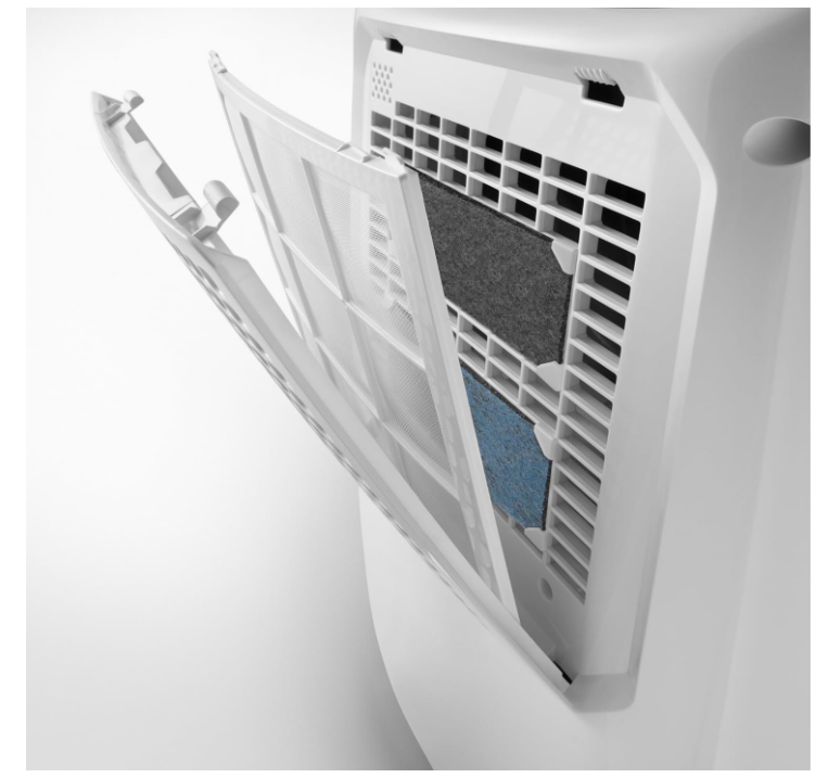 Para un ambiente ideal en casa, el deshumidificador DEX 214RF está equipado con un sistema de filtración de 3 acciones: un filtro de polvo que elimina las partículas más grandes, un filtro antialérgico extraíble que captura los alérgenos y un filtro de carbón activado que ayuda a eliminar los olores desagradables.