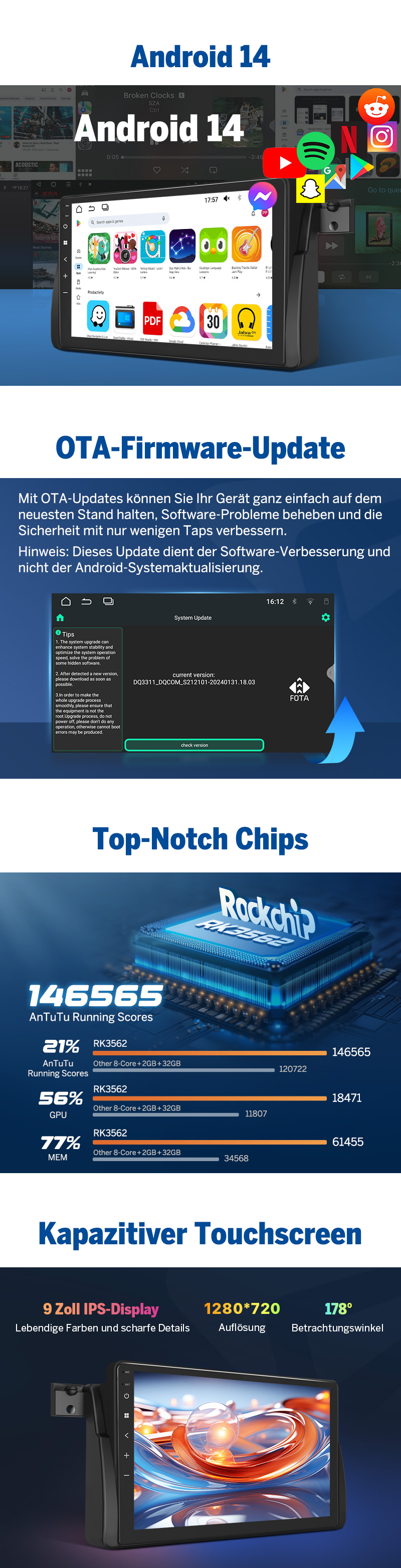 π₯οΈ 9" IPS HD Touchscreen Großes Display mit fahrzeuggerechter Integration.