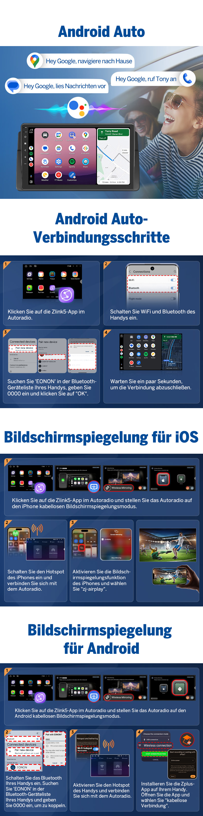 πΊ Kabelloses Smartphone Screen Mirroring Inhalte direkt auf dem Fahrzeugdisplay.