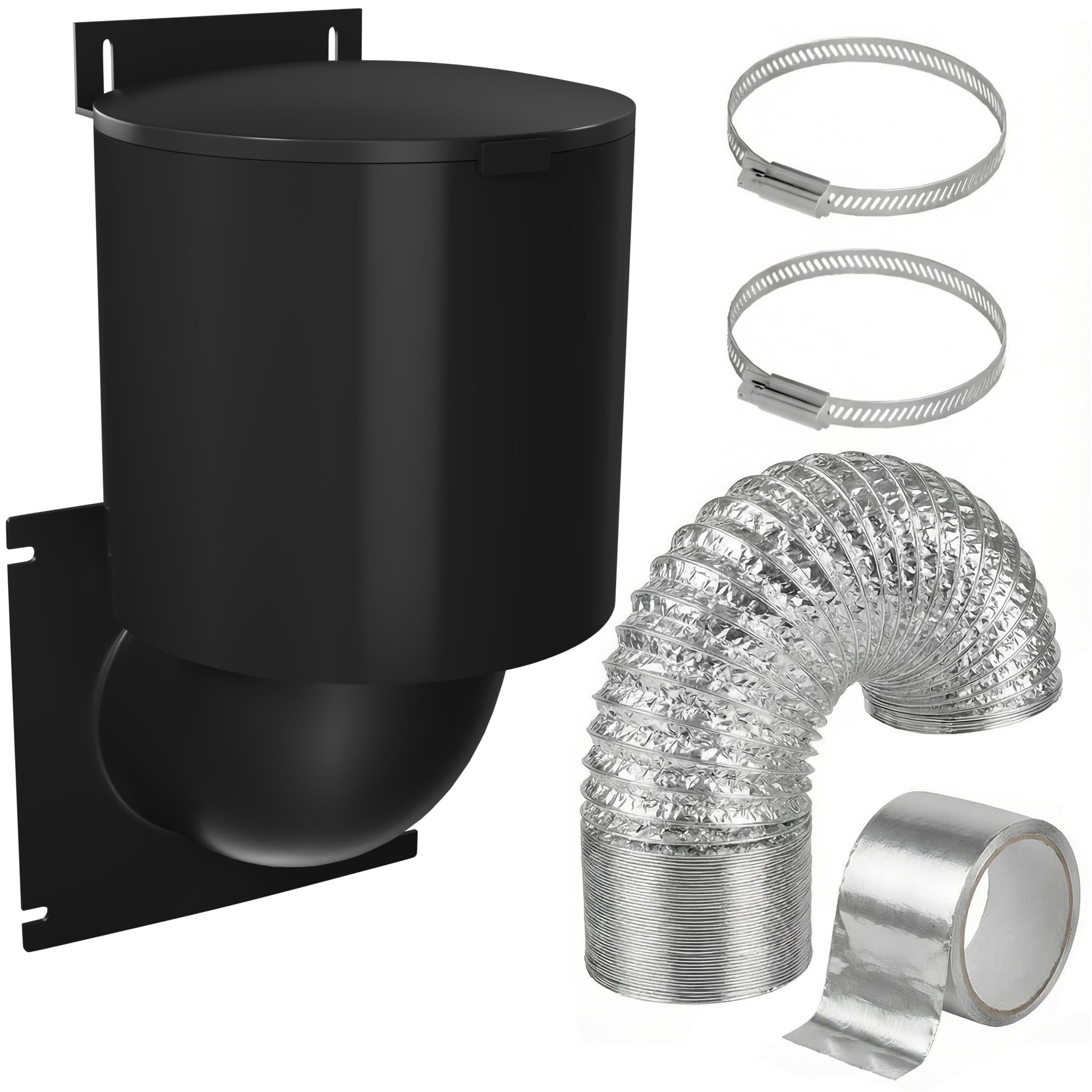Dryer Vent Kit (Black) – 4 Inch Cover, Duct & Clamp, Black