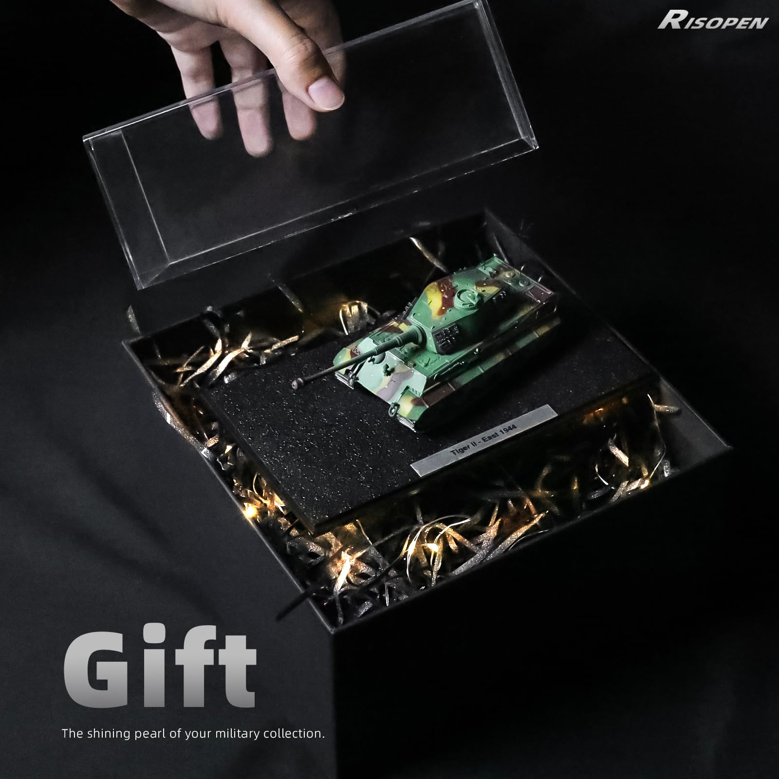 【Materials and Highlights】– 1/72 World War II military tank model is carefully crafted with high-quality materials. The body of the tank is made of solid die-cast alloy metal 1/72 tank model, giving the tank model realism and durability. The top console and turret are made of high-quality plastic tank model. This design not only enhances the appearance authenticity of the model, but also ensures the excellent durability and collection value of the 1/72 scale World War II tank model.