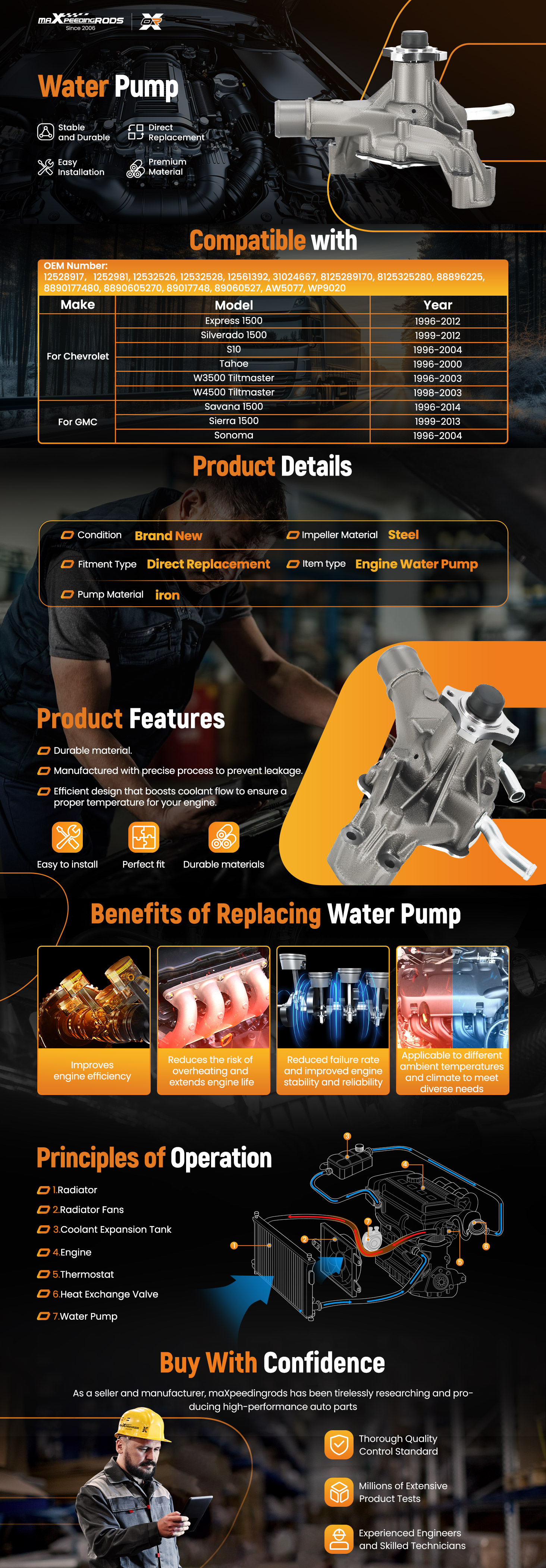 Engine Coolant Pump for Kubota B2630 B2650 B2710 16251-73034 Direct Replace