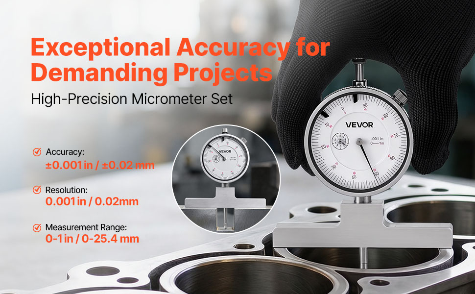 This depth micrometer gauge provides ±0.001 in(±0.02 mm)ultra-precise measurements. Made with metal, it ensures long-lasting performance, ideal for precision engineering, measuring parts, and other professional tasks.