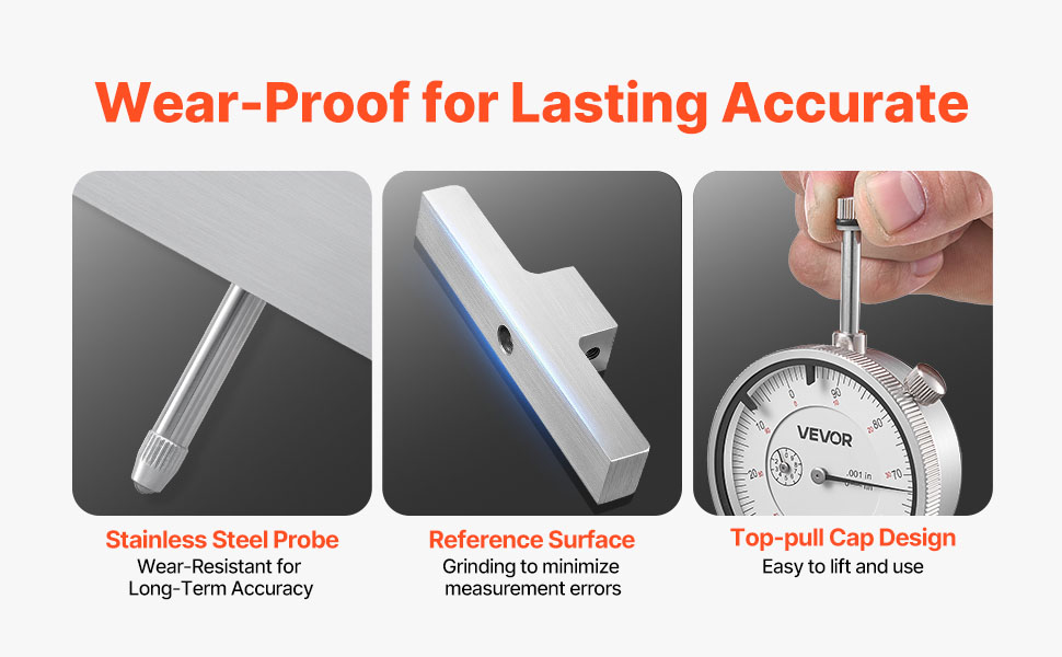 Precise Measuring: This depth gauge features stainless-steel anvils and smooth reference faces to securely hold workpieces and avoid measurement errors. The solid metal frame offers excellent wear resistance and long-term stability for workshop use