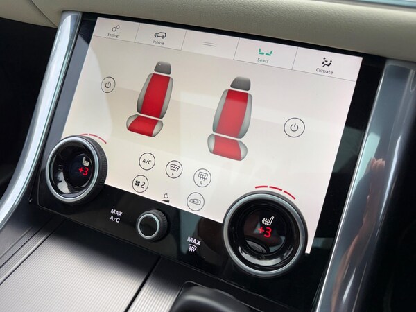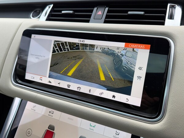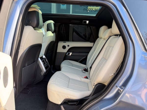 Byron Blue Metallic, Ivory oxford perforated leather, Ebony headlining, Privacy glass, 21” Black Design alloys, Black Design Pack, Contrast Black roof, Panoramic sunroof with power blind, Heated front & rear seats, Meridian Sound, Climate control, Terrain response, Electronic Air suspension, Adaptive dynamics, Touch Pro Duo, Navigation Pro, Driver interactive display, Voice control, Apple CarPlay, Android Auto, Heated windscreen, Matrix LED headlights with adaptive driving beam, Front & rear parking sensors, Rear view camera, Keyless entry, Drive Pro Pack : Blind spot assist, Adaptive Cruise control, Driver Condition Monitor, High -speed Emergency Braking, Lane Keep Assist, Traffic Sign Recognition & Adaptive speed limiter, Hands-free power tailgate, Electric 16 way front seats with memory, Four way lumbar adj, ISOFIX child seat fixing, Spare wheel, Electrically deployable side steps, Secure Tracker. Ongar Bridge 12 Months Parts & Labour Guarantee.