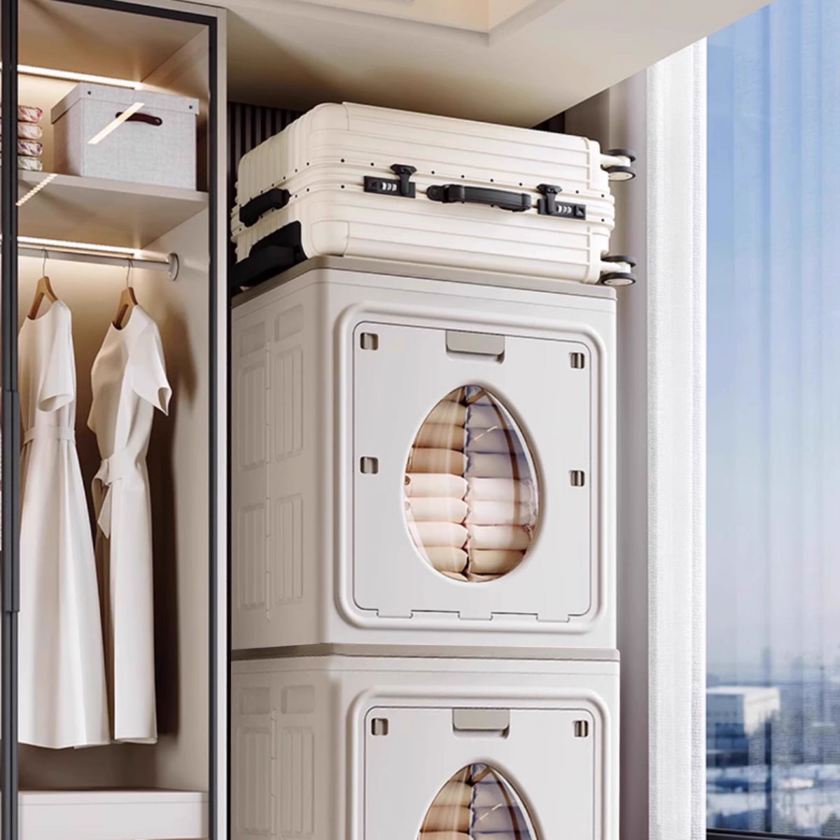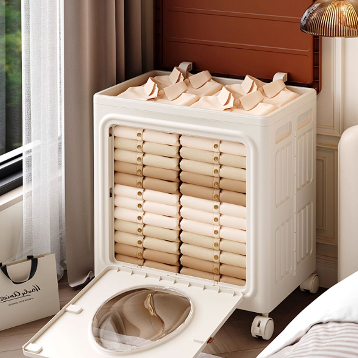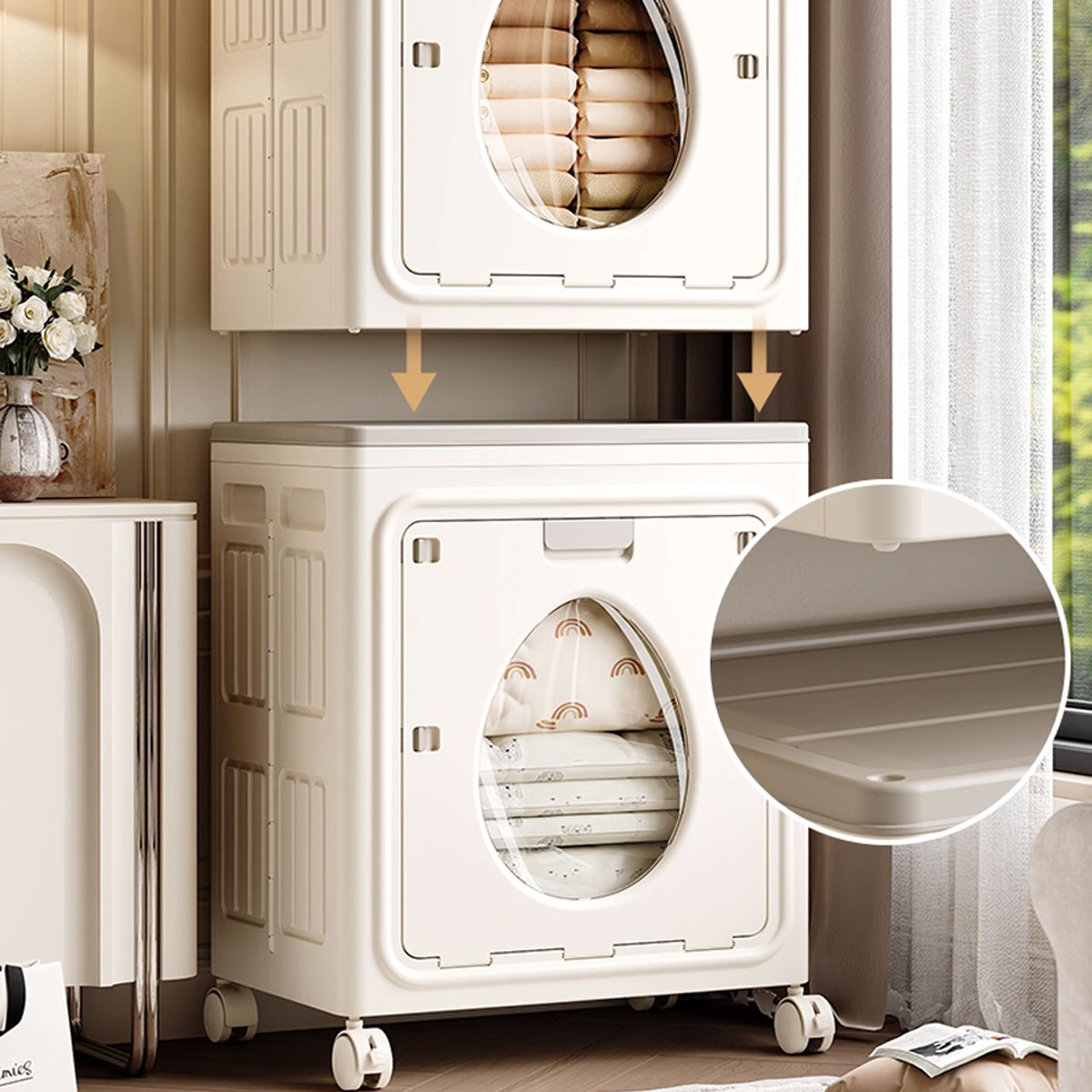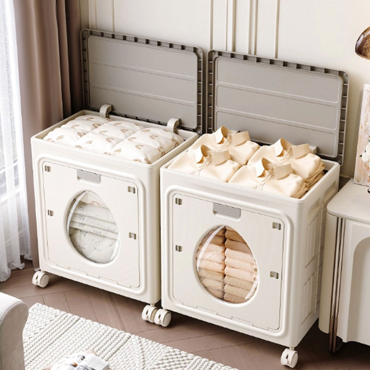 (2) Large-diameter flip-top cover. Large-diameter for easy storage of quilts and thick clothes.