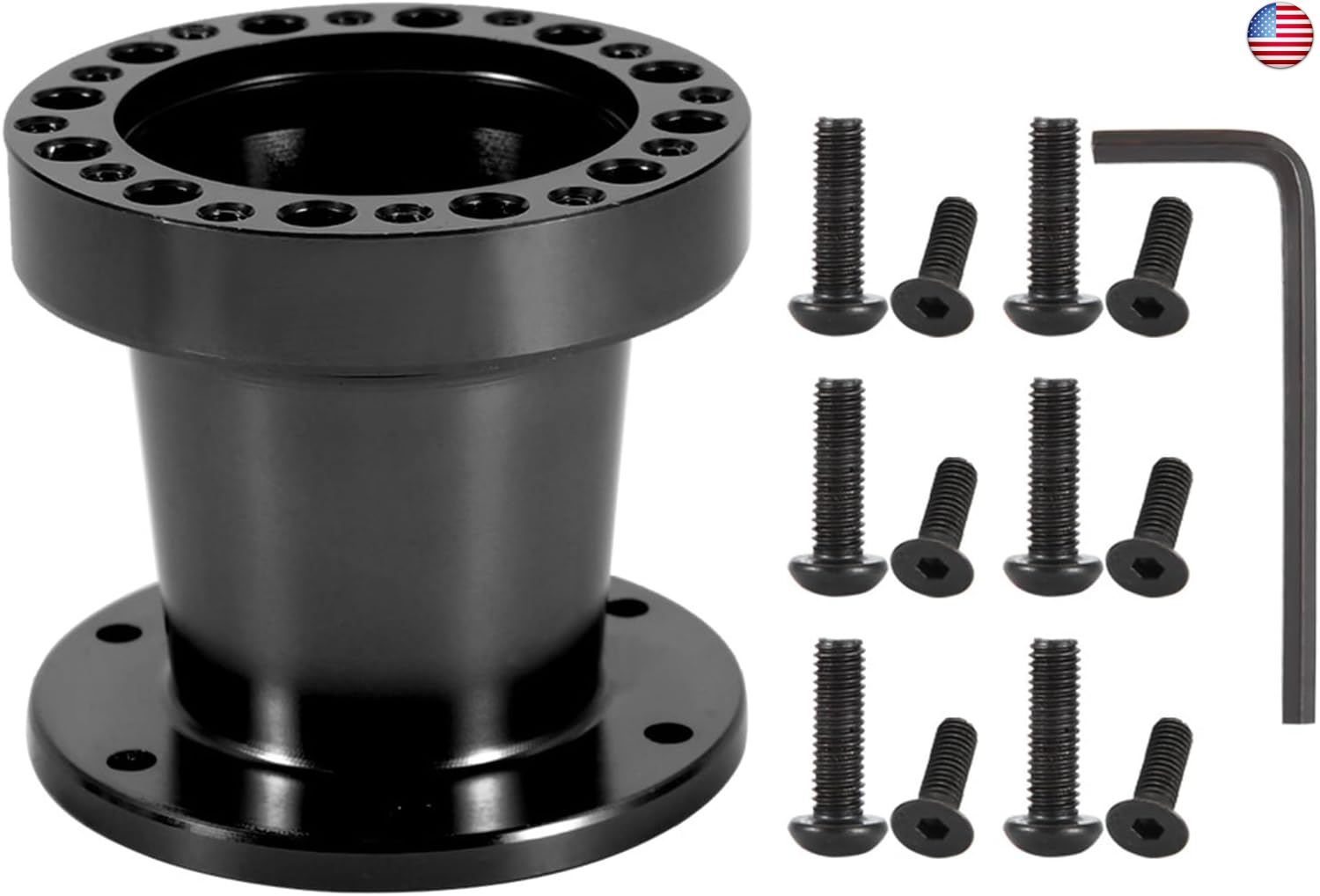 - [Easy to Install Practical Accessories] The Steering Wheel Spacer Hub is easy to install, and each kit includes one steering wheel hub spacer, 12 bolts, and one wrench. It's made up of two independent hole patterns that can accommodate any 6 hole kit. Although you can install it yourself, professional installation is recommended