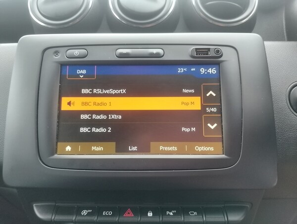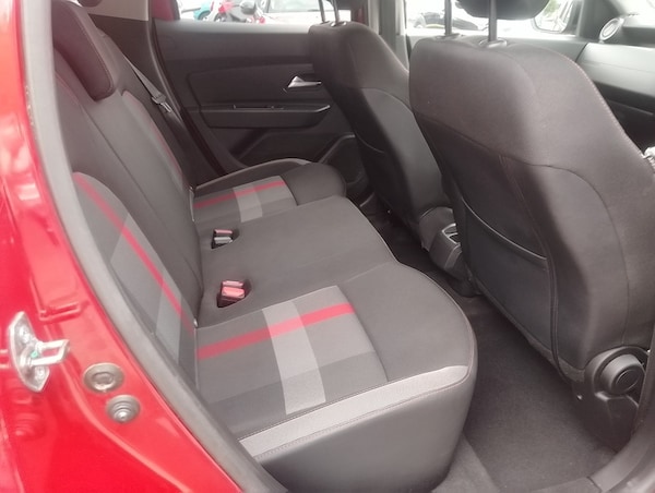 .Fusion Red,Techroad Cloth - Black and Grey with Red Stitching, AUX Input, Bluetooth Connectivity, Satellite Navigation - MediaNav 7in Touchscreen Multimedia System, USB Connection for MP3 Players, 7-Function On-Board Computer, Blind Spot Warning, Cruise Control, Door Open - Visual and Audible Warning, ECO Mode, Gear Shift Indicator, Multiview Camera Includes Sensors, Rear Parking Camera, Rear Parking Sensors, Rev Counter, Tyre Pressure Monitor, 17in Alloy Wheels - Maldive Diamantee with Red Centre, Black Number Plate Surround with Satin Chrome Duster Inscription, Bumpers - Front and Rear Lower Section in Black, Bumpers - Front and Rear Upper Section - Body Coloured, Chrome Front Grille, Dark Glass on Lateral Rear Windows, Door Handles - Body Coloured, Door Mirrors - Heated and Electrically Adjustable, Door Mirrors with Red Stripe, Electric Windows - Front, Electric Windows - Rear, Heated Rear Window, Roof Bars - Longitudinal with Duster Inscription - Satin Chrome, Side Sills - Black, Skid Plates - Front and Rear - Satin Chrome, Steering Wheel - Chrome Logo Surround, Tailgate Trim with Duster Inscription - Black-Satin Chrome, Tyre Inflation Kit, DRL - Daytime Running Lights, Dusk Sensor, Front Fog Lights, Headlights - Double Optic, High Level Third Brake Light, 3-Speed Front Windscreen Wipers, 4 X 20W FM-AM-DAB Tuner with Steering-Column Mounted Fingertip Controls, Air Recirculation - 4-speed Heating and Ventilation, Air Vents - Satin Chrome, Armrest - Front Centre, Boot Light, Centre Console Fascia - Matt Black, Centre Console Surround - Dark Carbon, Climate Control, Decorative Inserts on Front and Rear Door Panels - Piano Black, Door Handles - Interior Front - Black, Door Handles - Interior Rear - Black, Driver Seat Lumbar Adjustment, Fabric Decorative Insert on Front and Rear Door Panels, Front Door Sill Protection Strip, Front Passenger Reading Light, Gear Lever Cap Insert - Satin Chrome, Glovebox Light, Headrests - Rear Height Adjustable x3, Height-Adjustable Drivers Seat, Height-Adjustable Front Headrests, Height-Adjustable Steering Wheel, Instrument Dial Surrounds - Satin Chrome, Lower Steering Wheel Insert - Satin Chrome, Map Pockets on Front Seatbacks, Rear Passenger Reading Light, Rear Washer-Wipe, Seats - 60-40 Split Folding Rear, Soft Feel Steering Wheel, Sunvisor with Vanity Mirror - Passenger, Under Passenger Seat Storage, Electric Power-Assisted Steering, Speed Limiter, 3-Point Rear Seatbelts x3, Airbags - Driver, Airbags - Front Passenger with Deactivation Function, Airbags - Front Side, Anti-lock Braking System - ABS and Emergency Brake Assist - EBA, ASR - Traction Control with ESC - Electronic Stability Control, Central Locking - Remote, Child Locks in Rear Doors, Driver and Passenger Seatbelt Not Fastened - Visual and Audible Warning, Front Seatbelt Pretensioners, Height-Adjustable Front Seatbelts, ISOFIX Points for Child Seats in Both Outer Rear Seats, Keyless Entry, Thatcham Approved Engine Immobiliser