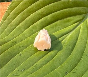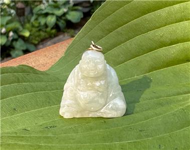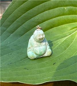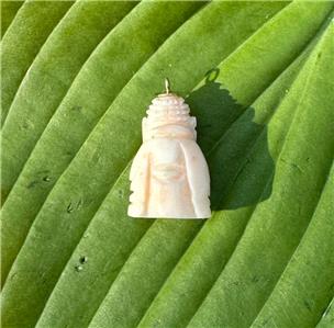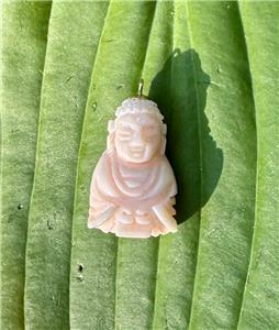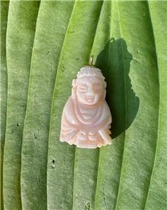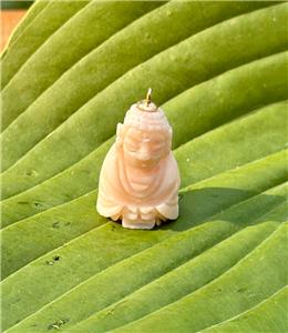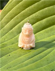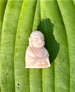 The Buddha is exquisitely carved in natural Angel Skin Coral. The Buddha miniature is a beautiful creation with wonderful details in the face, hair, earrings and robes in Angel Skin Coral. The size of the Buddha is perfect to wear as a pendant necklace on your favorite chain or on a charm bracelet if desired.