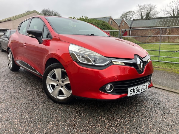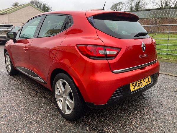 FULL SERVICE HISTORY 2016 Renault Clio 1.2 16V Dynamique Nav Hatchback is the perfect combination of style and functionality, with only 58000 miles on the clock, this petrol manual Euro 6 (75 ps) vehicle is ULEZ compliant Will have a new MOT. The 5-door hatchback provides ample space for all your passengers, with 5 seats and a range of convenient storage options such as the 1.2L storage shelf above the glovebox and 4L front glovebox. The flame red exterior catches the eye, while the air conditioning, manual transmission, and 2x storage spaces for cups and miscellaneous items near the handbrake make driving a pleasure. Don't miss out on this incredible opportunity to own a reliable and stylish car. WARRANTY FREE AA BREAKDOWN COVER PLESE PHONE BEFORE VISITING Features Include: , 1.2l storage shelf above glovebox, 2x storage spaces for 2 cups and miscellaneous items near handbrake, 4l front glovebox, air conditioning - manual, centre console - gloss black - dashboard inserts - gloss black - air vent surrounds with matt chrome adjusters, dashboard - soft touch dark carbon, front speaker surrounds - gloss black with red bass reflex logo, gear knob insert - matt chrome, handbrake button - matt chrome, headrests - front height adjustable - srp - system for restraint and protection, headrests - rear x3, heating system with pollen filter, instrument dial surrounds - matt chrome, seats - 60-40 split folding rear, seats - drivers height adjustment, small storage area by gear stick for phone-keys, steering wheel - height and reach adjustable, steering wheel - leather with gloss black insert, storage space 1.2l - 1x front door, windscreen wipers - variable speed, 12v power socket, renault medianav, usb connection, 16in alloy wheels - passion chrome, b-pillar - matt black, bumpers - body coloured, clio inscribed under renault diamond badge, door handles - body coloured - front, door handles - interior matt chrome, door mirrors - black gloss - electrically adjustable and heated, electric windows - front, exterior chrome touches - side door- boot lid strip and front grille strips, lightly tinted windows, lower door protector - black gloss with chrome insert, rear engine badge, rear spoiler - body coloured, strip base of bootlid - chrome, tyre inflation kit, abs - anti lock brakes, airbags - deactivation - front and side - driver and passenger, anti drill door locks, anti-pinch function on electric windows, deadlocking, driver seat belt height adjustable,