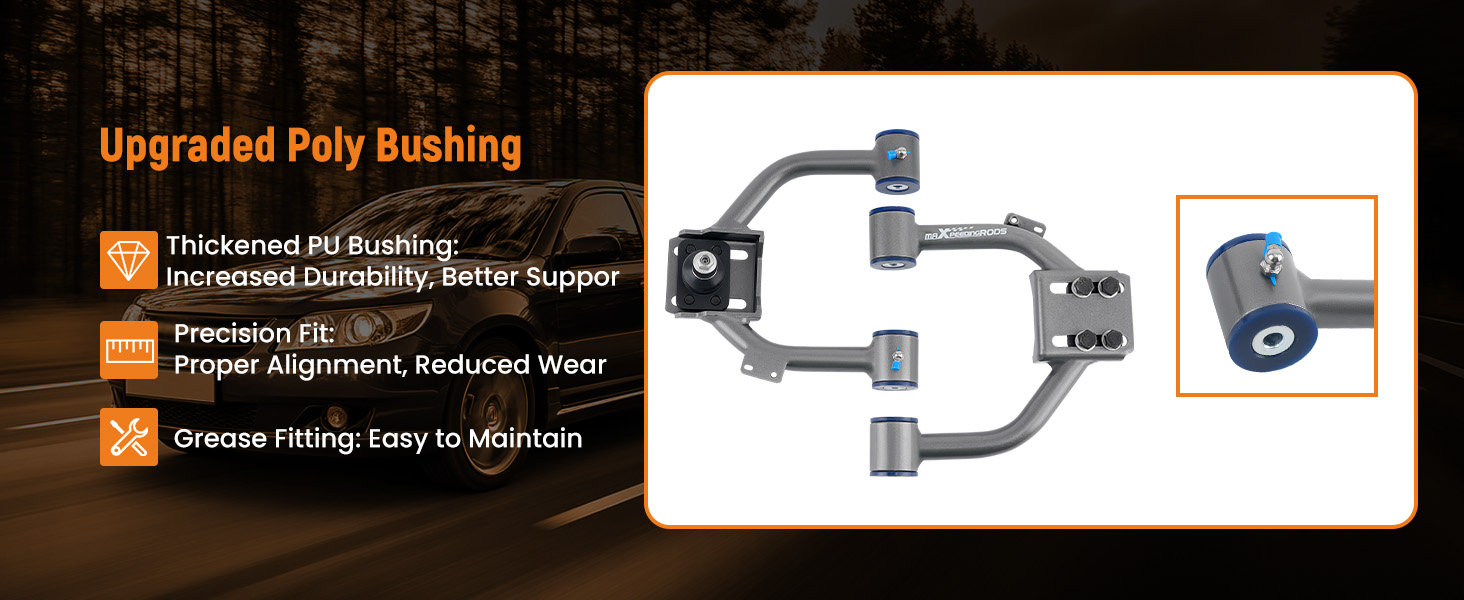 - Upgraded from rubber bushings to polyurethane bushings, solving the problem of rapid wear of rubber bushings, and provides more responsive handling