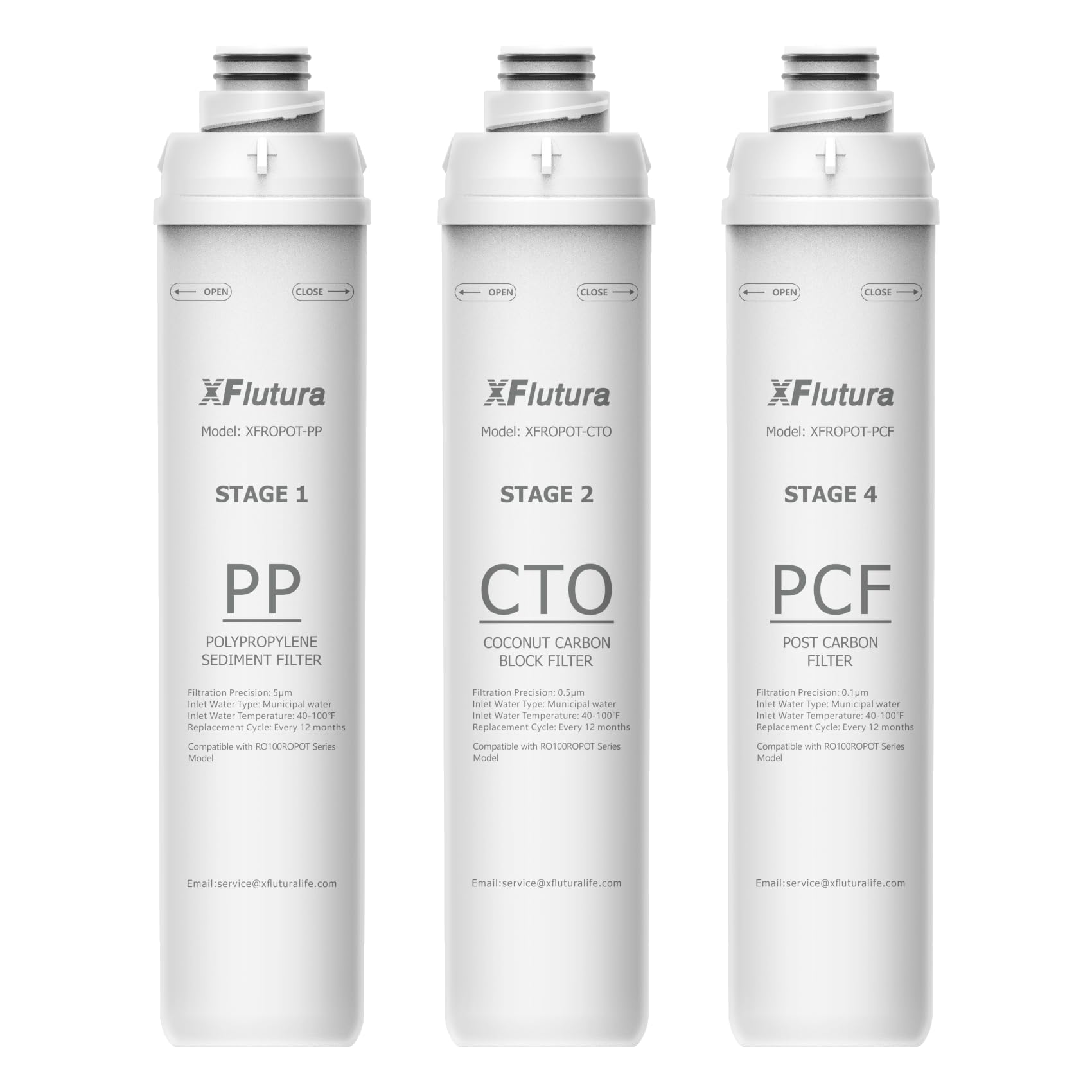 RO100ROPOT Series 1-Year Replacement Filter Cartridge Set Compatible with Bluevua RO100ROPOT, RO100ROPOTUV Series Water Filter, 1-Year Replacement Cartridge, Pack of 3 Filters (1*PP, 1*CTO, 1*PCF)
