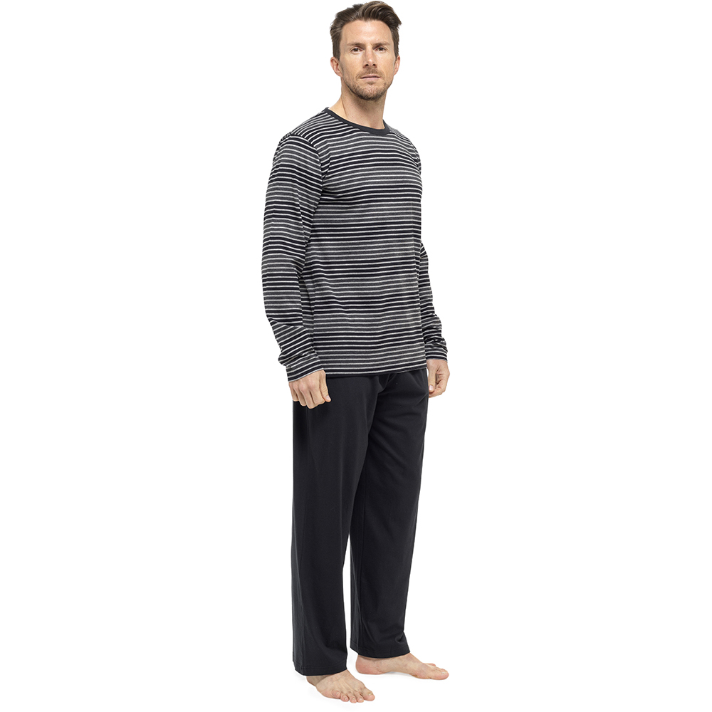 Men's Tom Franks striped long sleeve tee and long bottoms pyjama set with eye mask. These pyjamas make an ideal gift! Available Sizes: Medium Chest 39-41" (99-104cm), Large Chest 42-44" (107-112cm), X-Large Chest 45-47" (114-119cm). XX-Large Chest 48-50" (121-126cm) Made From: 100% Cotton Jersey.