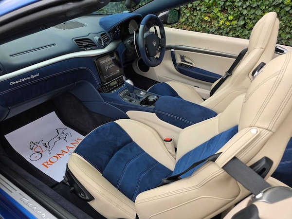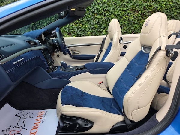Romans of St Albans are delighted to present this stunning, Maserati GranCabrio Sport, finished with a tailor made specification in Blu Sofisticato Paint, which is protected with full PPF. It has Two Tone Leather and Alcantara Seats (Blu Profondita Alcantara and Beige Leather). This benefits from a Full Service History and is in incredible condition inside and out! Huge list of optional extras to include: Blu Sofisticato Paint, Carbon Fibre Exterior Package (Including Rear Spoiler, Front Splitter and Door Handles), Dashboard in Blu Profondita Alcantara, Blu Navy Stitching, Blu Soft Top, Beige Headlining, Apple Car Play/ Android Auto, Reverse Camera, Wind Deflector, Alcantara Interior Pack Blu Trofeo, Alcantara Seat Centres Blu Trofeo, Stitching for All Alcantara Pearl Beige, Steering Wheel in Blu Profondita Leather with Blu Trofeo Alcantara, Yellow Brake Callipers, 20" MC Matt Graphite Alloy Wheels, and more! FINANCE AVAILABLE. A £299 admin fee applies to third party finance companies being used. FREE ON-SITE PARKING (ASK FOR DETAILS.) Romans after care package includes: Romans warranty for 6 months (12,24 & 36 months are available), Main dealer cover available, Free breakdown cover for warranty duration, Full Romans service prior to delivery, 84 point vehicle inspection, 12 months MOT, Free Life time MOT when servicing with us (ask for details), Total value of package: £2000 - ALL INCLUSIVE IN THE PRICE. All of our clients have the added peace of mind that we have our own workshop facilities with free courtesy cars. Part Exchange very welcome, nationwide delivery also available. To avoid a wasted journey we highly recommend making an appointment, so call us now to get yours booked! Romans provide the highest of quality vehicles, and have at least 80 cars in stock at any one time. This means not all cars can be kept on site. This will also allow us to give you our fully undivided attention when viewing the vehicle you are interested in, WE ARE LOOKING TO BUY YOUR TOP SPEC, LOW MILEAGE, FULL SERVICE HISTORY PRESTIGE, SPORTS, AND 4X4 VEHICLES. GET MORE FOR YOUR VEHICLE BY EITHER SELLING TO US, OR ASKING US TO SELL YOUR VEHICLE FOR YOU. PRIVATE BUYERS WANT WARRANTIES, THEY WANT TO PART EXCHANGE, THEY WANT FINANCE - TAKE ADVANTAGE OF ALL OUR FACILITIES. CALL US NOW TO DISCUSS GETTING RID OF YOUR VEHICLE QUICKLY..Front Parking Sensors, Full PPF (Paint Protection Film), MC - Aerodynamic Package in Carbon Fibre - II, Alcantara Seat Centres - Blu Trofeo, Alcantara Interior Pack - Blu Trofeo, Beige Alcantara Headlining, Steering Wheel in Blu Profondita Leather with Blu Trofeo Alcantara, Carpet Colour Upon Request, 20" MC Matt Graphite Alloy Wheels, Stitching Colour Upon Request - Excluding Steering Wheel/Gear Knob and Gaiter, Seat Back Colour (Pearl Beige), Pearl Beige Leather, Dashboard - Upper-Lower and Rear Tonneau Cover Colour Upon Request, Dual-Colour Interior, Trident Logo Stitched on Headrests, TPMS - Tyre Pressure Monitoring System, Coloured Soft Top with Coloured Lining, Coloured Brake Calipers - Silver/Blue/Yellow/Black/Titanium, Windstop, Blu Sofisticato, 20in Alloy Wheels - Astro Design, 30Gb Hard Disk Drive, 7in Dashboard Screen, ABS - Anti-Lock Braking System, Adaptive Light Control System, Aerodynamic Side Skirts and Front Winglets, Airbags - Driver Dual-Stage Smart, Airbags - Front Seat Side, Airbags - Passenger Dual-Stage Smart, Airbags - Window - Front, Alarm System - Perimetric and Volumetric Sensing-Anti-lift Device, Aluminium Sport Pedals and Trofeo-Design Paddles, Automatic Headlight Activation, Bi-Xenon Headlights, Black Vertical Slat Front Grille Featuring Trident Logo with Red Highlights, Bluetooth Connectivity, CD Player - with RDS Tuner, Central Locking - Remote, Cruise Control, Dashboard Mounted Maserati Design Clock, Double Wishbone Suspension with Sport Skyhook Continuously Adaptable Damping, Dual Zone Automatic Climate Control with Two Rear Air Outlets, EBD - Electronic Brakeforce Distribution, EPB - Electronic Parking Brake, Electric Front Windows, Electrically Adjustable Front Seats with Lateral Support and M-Design Stitching, Electrically Adjustable and Heated Door Mirrors, Electrically Assisted Boot Opening, Electrically Assisted Door Opening, Electrochromatic Interior Rear View Mirror, Electronic Immobiliser, Exterior Trim - Shadowline, Folding Front Armrest with Illuminated Storage Compartment, Front Fog Lights, Front Seats with Lumbar Support, Front and Rear Double Cup-Holders, Front and Rear Head Restraints with Embossed Trident Logo, Front and Rear Pre-Tensioner Seat Belts, HBA - Hydraulic Brake Assist, Headlight Washers, ISOFIX Rear Child Seat Attachment, Interior Trim - Dark Grey Chrome, LED Rear Light System, MSP - Maserati Stability Program, Maserati Hi-Fi Loudspeaker System, Maserati Multimedia System, Multi-Function St