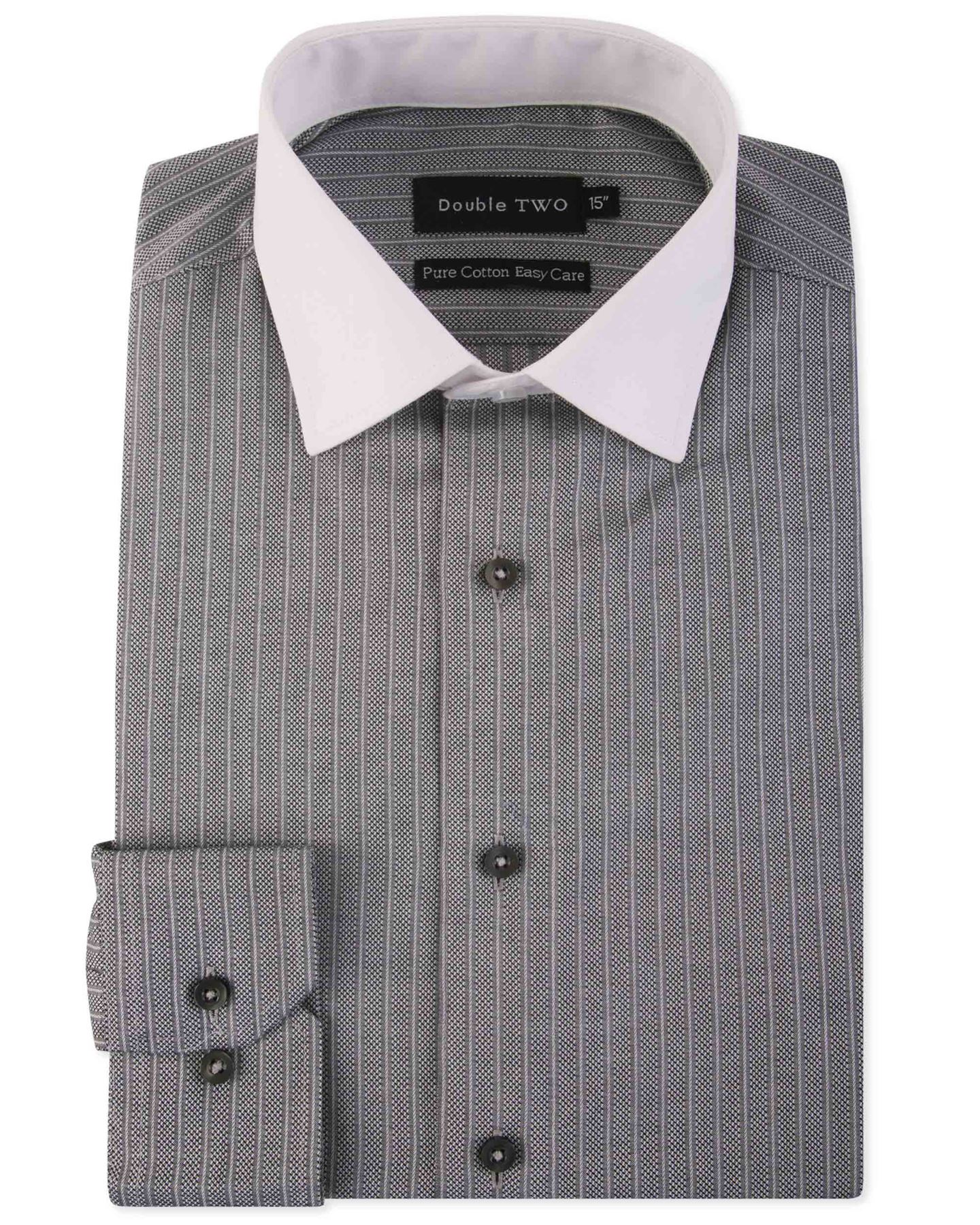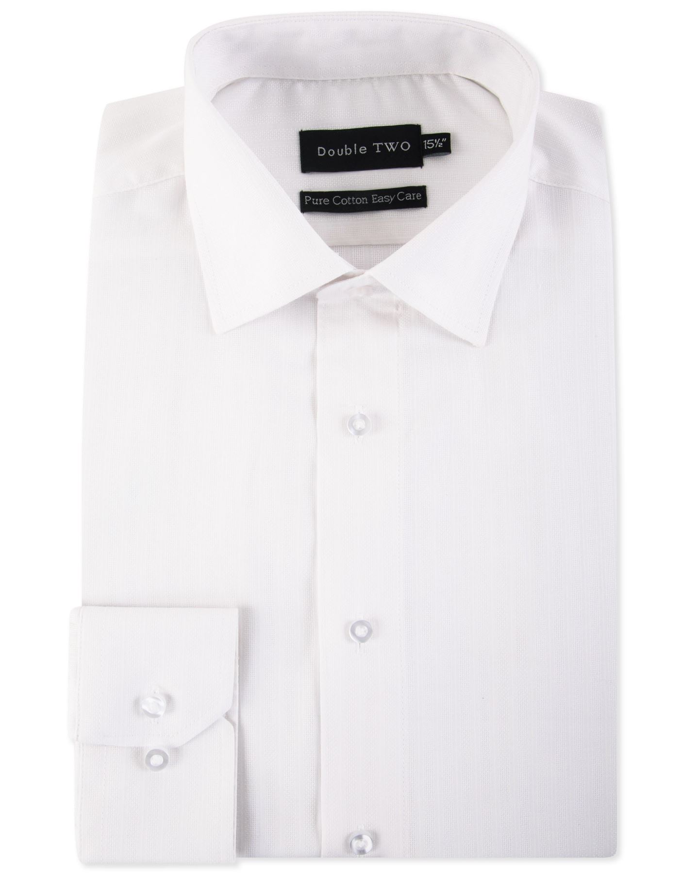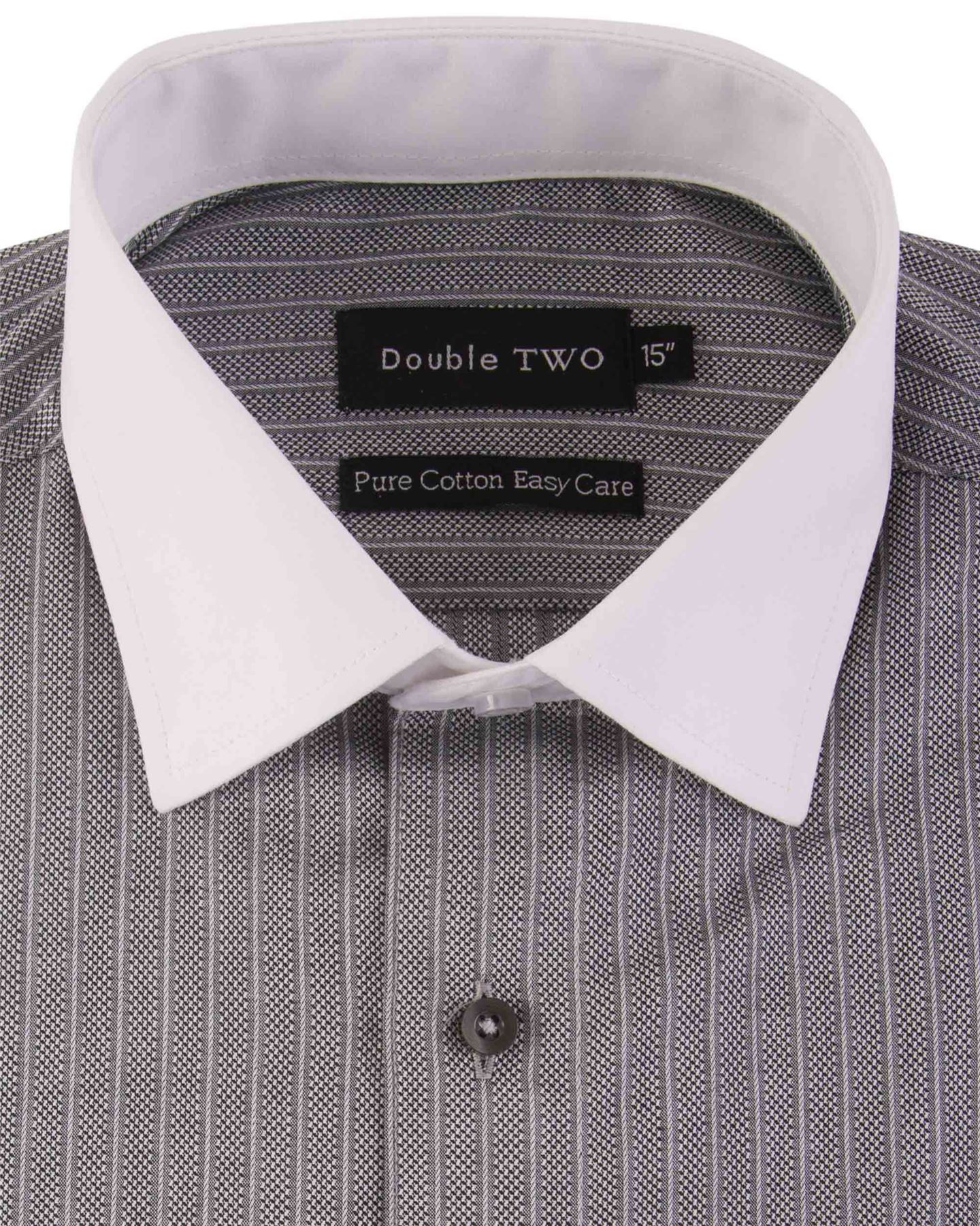 Double Two Chemise LS à motifs à motifs de coton pur (3781) dans le collier blanc Stripe White Taille 18-23 3 Couleurs Options