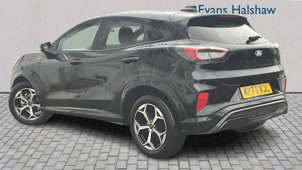 Agate Black, Cloth - Black with Red Stitching, Winter Pack, 12in Landscape Touchscreen Display - Wireless Apple CarPlay and Android Auto - 6 Speakers - Ford SYNC Navigation - FordPass Connect and Emergency Assist, Automatic Headlights with Rain-Sensing Wipers and Auto High Beam, Cruise Control with Intelligent Speed Assist, LED Projector Headlights with Daytime Running Lights and Front Fog Lights, LED rear lights, Power Steering, Pre-Collision Assist with Autonomous Emergency Braking and Pedestrian-Cyclist Detection, Rear View Camera with Rear Parking Sensors, Selectable Drive Modes, Sports Suspension, 17in Alloy Wheels - Black Machined Finish, Electric Windows - Front and Rear, Power-Foldable Heated Door Mirrors with Puddle Lamps and Puma Logo Projection, Privacy Glass - Rear, Quickclear Heated Windscreen, ST-Line Body Styling Kit, Tailgate - Manual, Tyre Inflation Kit, ABS - Anti-lock Braking System, Airbags - Driver and Front Passenger, Lane Keeping Aid with Lane Departure Warning, Electronic Automatic Temperature Control - EATC, Ford MegaBox Extended Bootspace, Ford Power Start Button, Instrument Cluster - 12.8 Full Digital, Manual 2-Way Passenger Seat Adjust, Manual 4-Way Driver Seat Adjust with Lumbar Support