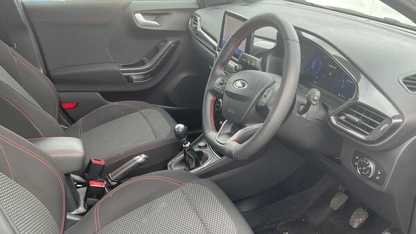 Privacy Glass, Cloth - Black with Red Stitching, Magnetic, 17in Alloy Wheels - 5x2 Spoke - Black Machined Finish, Acoustic Laminated Windscreen, Active Grille Shutter, Ecoboost Hybrid Tailgate Badge, Electric Windows - Front and Rear, Front Bumper - Unique ST-Line Sport Design - Body Colour, Large Rear Spoiler - Body Colour with Centre High Mounted Stop Light, Locking Wheel Nuts, Lower Bodyside Moulding - Body Colour, Power-Foldable Heated Door Mirrors with Puddle Lamps, Puma Badge, Quickclear Heated Windscreen, Rear Bumper Body Colour - Diffuser, ST-Line Badge, ST-Line Body Styling Kit, Tailgate - Manual, Tyre Inflation Kit, ABS - Anti-lock Braking System, ESC - Electronic Stability Control and Hill Start Assist, Emergency Brake Warning - Automatic Hazard Warning Lights, First Aid Kit Strap, Lane Keeping Aid with Lane Departure Warning, Post Collision Braking, Remote Central-Double Locking, Thatcham Alarm, Traction Control and Emergency Braking Assistance, Automatic Headlights with Rain-Sensing Wipers and Auto High Beam, Cruise Control with Intelligent Speed Assist, Ford SYNC 3 Navigation, Front Fog Lights, Intelligent Speed Assistance, LED rear lights, Power Steering, Pre-Collision Assist with Autonomous Emergency Braking and Pedestrian-Cyclist Detection, Projector Headlamps with LED Daytime Running Lights, Rear Parking Sensors, Selectable Driving Modes - Normal - Eco - Sport - Slippery and Trail, Speed Limiter, Sports Suspension, Trip-Fuel Computer, Tyre Pressure Monitoring System - TPMS, Automatic Dimming Rear View Mirror, Centre Console - Premium with Openable Stowage Area with USB Connectivity - 2 Cupholders and 12v Power Point, Courtesy Lights - Ambient LED Courtesy Lighting - Single Colour, Drivers Manual 4-Way Seat Adjustment with Manual Lumbar Adjust, Ford MegaBox Extended Bootspace, Ford Power Starter Button, Front Floor Mats, Front Seats - Sports Style, Full Digital 12.3in Instrument Cluster, Gear Knob - Aluminium, Handbrake - Black Sensico Trimmed with Stitching, Headliner - Deluxe, Instrument Panel - High Level, Manual Air Conditioning, Passengers Seat - 2-Way, Rear Seats - 2-Way Head Restraint Up-Down, Rear Seats - Second Row 60-40 Folding Seats, Restrain Device Pack, ST-Line Flat-Bottomed Leather Steering Wheel with Unique Red Stitching, Soft-feel Gearshift Boot with Red Stitching