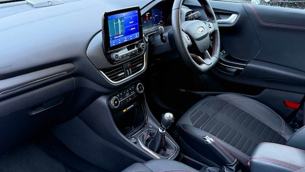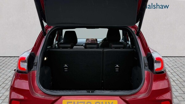 Parking Pack, Fantastic Red, Partial Premium Sensico - Black with Red Stitching, Handsfree Power Tailgate, Winter Pack, 18in Alloy Wheels - 5-Spoke - Matt Black Machined Finish, Acoustic Laminated Windscreen, Active Grille Shutter, Ecoboost Hybrid Tailgate Badge, Electric Windows - Front and Rear, Front Bumper - Unique ST-Line Sport Design - Body Colour, Large Rear Spoiler - Body Colour with Centre High Mounted Stop Light, Locking Wheel Nuts, Lower Bodyside Moulding - Body Colour, Power-Foldable Heated Door Mirrors with Puddle Lamps, Privacy Glass, Puma Badge, Quickclear Heated Windscreen, Rear Bumper Body Colour - Diffuser, ST-Line Badge, ST-Line Body Styling Kit, Tailgate - Manual, Tyre Inflation Kit, ABS - Anti-lock Braking System, ESC - Electronic Stability Control and Hill Start Assist, Emergency Brake Warning - Automatic Hazard Warning Lights, First Aid Kit Strap, Lane Keeping Aid with Lane Departure Warning, Post Collision Braking, Remote Central-Double Locking, Thatcham Alarm, Traction Control and Emergency Braking Assistance, Automatic Headlights with Rain-Sensing Wipers and Auto High Beam, B&O Premium Audio System and Ford SYNC 3 Navigation, Cruise Control with Intelligent Speed Assist, Front Fog Lights, Intelligent Speed Assistance, LED rear lights, Power Steering, Pre-Collision Assist with Autonomous Emergency Braking and Pedestrian-Cyclist Detection, Projector Headlamps with LED Daytime Running Lights, Rear Parking Sensors, Selectable Driving Modes - Normal - Eco - Sport - Slippery and Trail, Speed Limiter, Sports Suspension, Trip-Fuel Computer, Tyre Pressure Monitoring System - TPMS, Wireless Charging Pad with Electronic Air Temperature Control EATC, Automatic Dimming Rear View Mirror, Carbon-Look Interior Deco Spears, Centre Console - Premium with Openable Stowage Area with USB Connectivity - 2 Cupholders and 12v Power Point, Courtesy Lights - Ambient LED Courtesy Lighting - Single Colour, Drivers Manual 4-Way Seat Adjustment with Manual Lumbar Adjust, Electronic Air Temperature Control - EATC, Ford MegaBox Extended Bootspace, Ford Power Starter Button, Front Floor Mats, Front Seats - Sports Style, Full Digital 12.3in Instrument Cluster, Gear Knob - Aluminium, Handbrake - Black Sensico Trimmed with Stitching, Headliner - Deluxe, Instrument Panel - High Level, Passenger 4-Way Seat with Lumbar Adjustment, Rear Seats - 2-Way Head Restraint Up-Down, Rear Seats - Second Row 60-40 Folding Seats, Restrain Device Pack, ST-Line Flat-Bottomed Leather