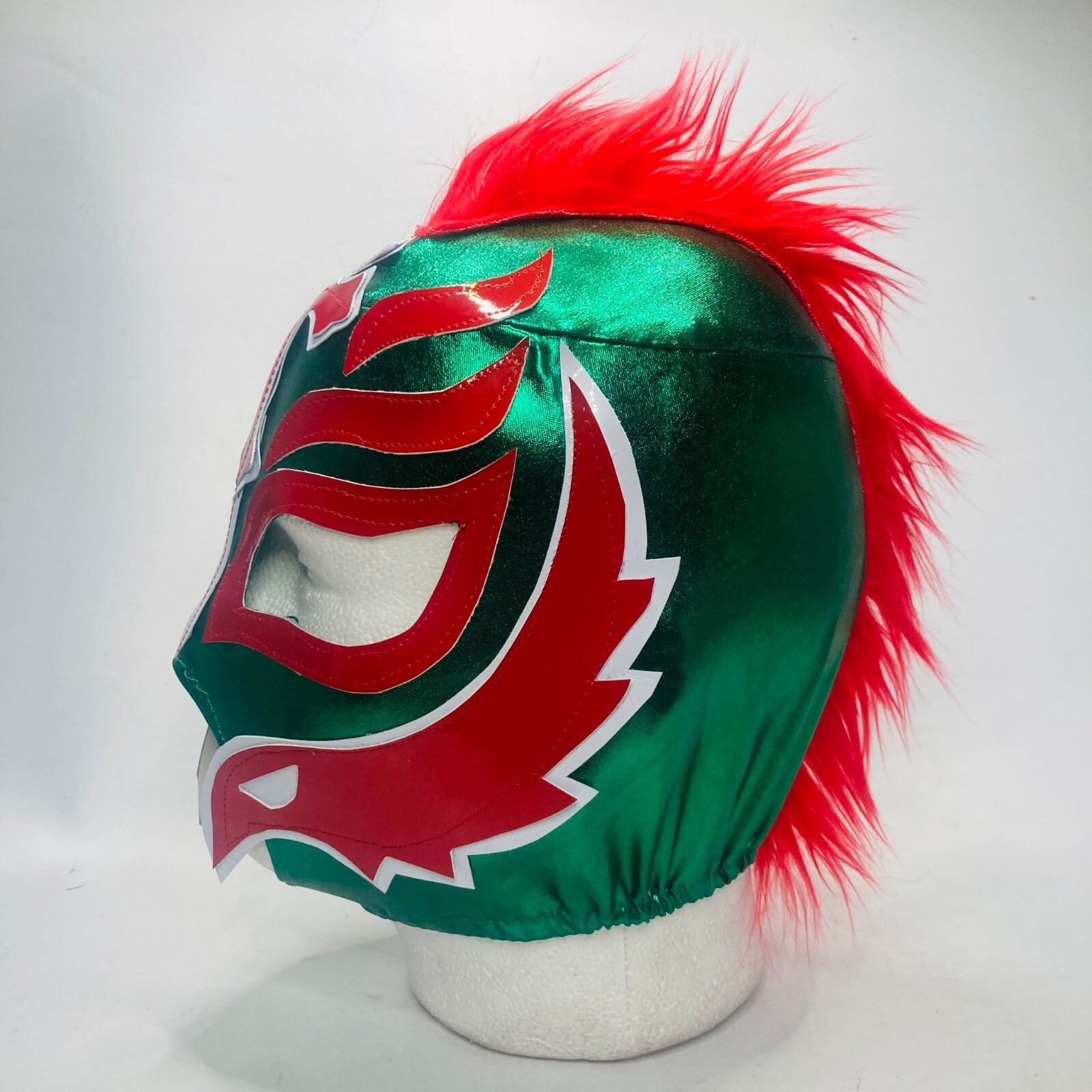 King Mysterio Handmade Kids Size Lucha Mask Faux Mohawk Hair Green & Red Colors.