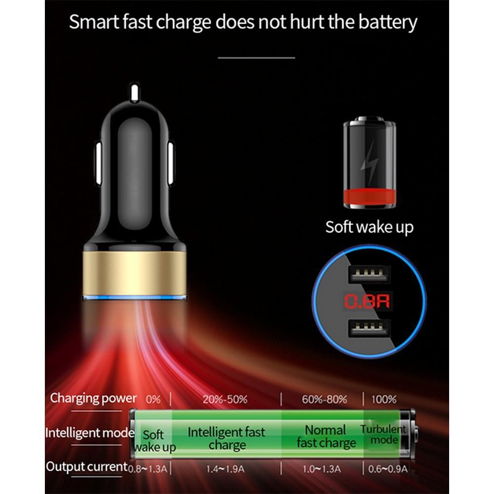 Caractéristique: 1. Largement compatible, compatible avec les appareils électroniques couramment utilisés pour la charge. 2. Charge rapide intelligente, ne nuit pas à la batterie, pour protection contre les courts-circuits, charge sûre. 3. Le corps est en matériau ABS, qui résiste aux températures élevées et n'est pas déformé. 4. La bague lumineuse d'atmosphère bleue ajoute élégance et vitalité à la voiture. 5. Détection de tension de batterie, affichage numérique LED.