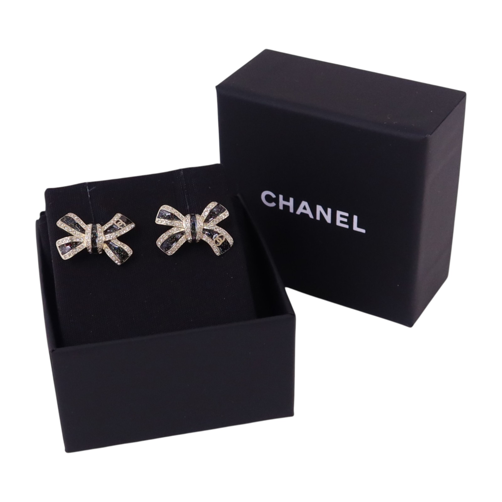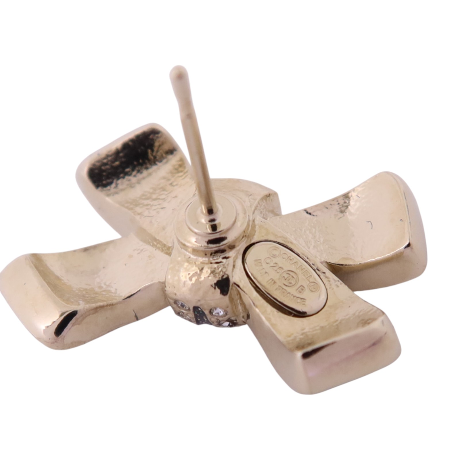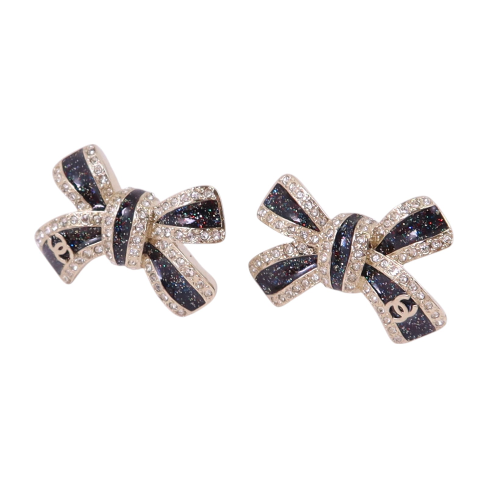 | Item Name | CHANEL CC GHW Ribbon Earrings C25B Metal Strass Black Gold Tone Color |