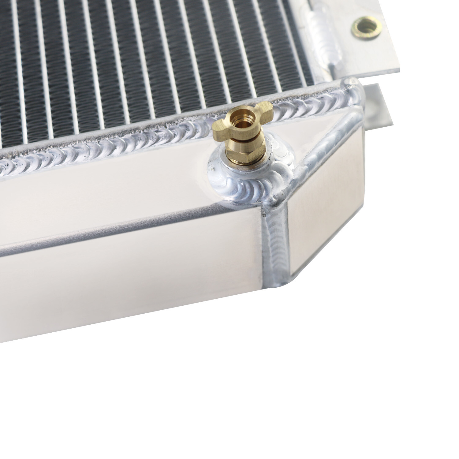 3.14-16 cooling fins per inch,giving you approximately 1500 more cooling fins than other aluminum radiators.AA5052 aluminum radiator core can be made more efficient by changing the tube spacing and fin count. If the tubes are placed closer together and the fins are packed in tighter a denser core is created that throws off much more heat. A high efficiency core can have tubes on 3/8" centers and fin counts increased to 14 to 16 FPI,That may not seem like a big deal but the surface area is greatly increased. Combined with all the additional fins between the tubes this provides approximately 30% to 45% better cooling than the OEM radiator had.