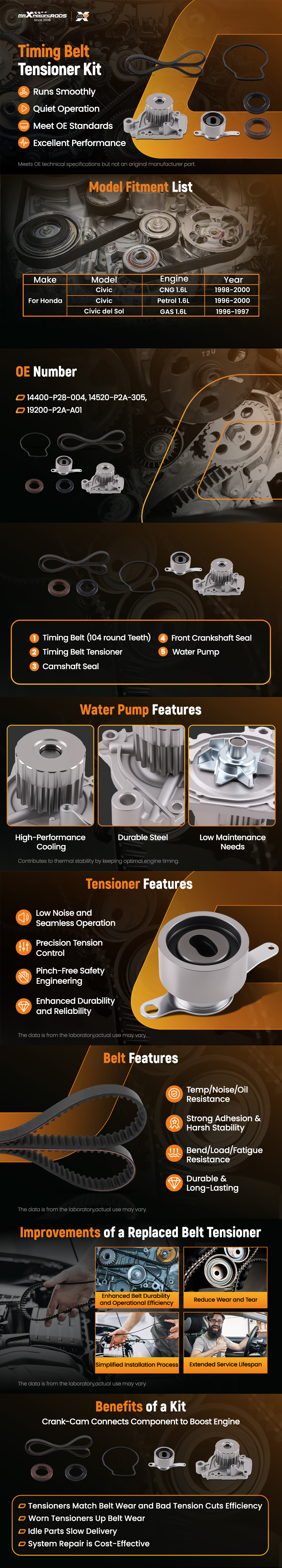 Timing Belt Tensioner: 14510P08003, 14510P08004, 14516P2A900, 14516P2AJ00, 14520P2A305, 14520P2A30
