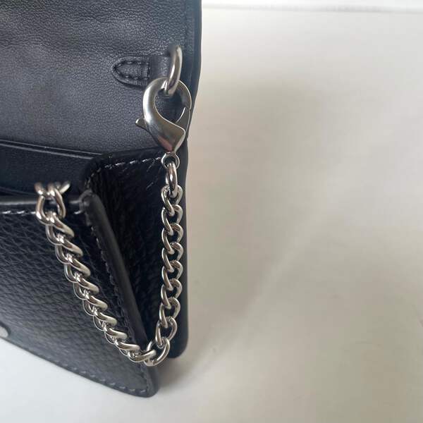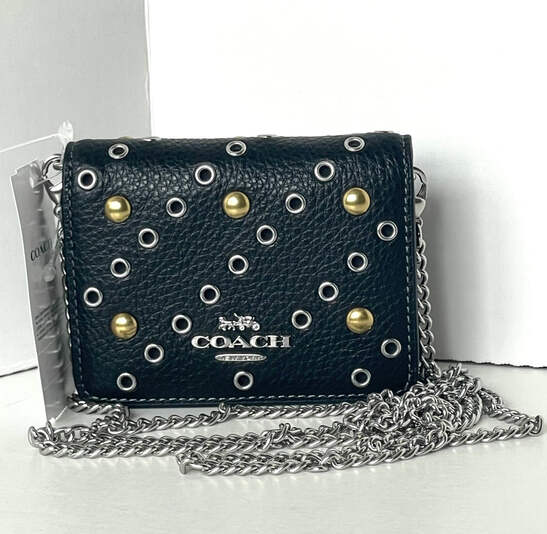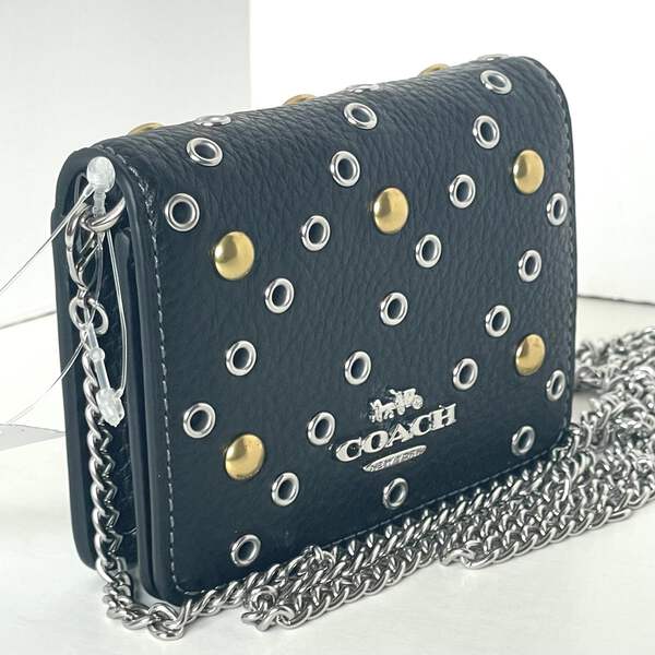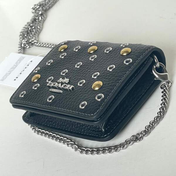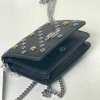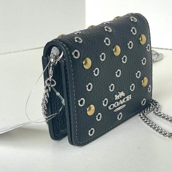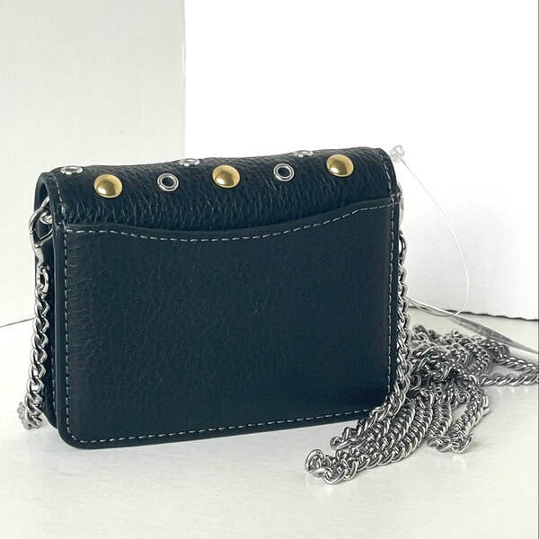 The Mini Wallet on a Chain is here. This playful, little favorite is crafted of refined pebble leather and detailed with gold and silver rivets. Thanks to its stylish chain strap, you can carry the wallet with ease and even wear it as a crossbody. It's the perfect accessory for when you want to travel light but still keep your essentials close at hand.