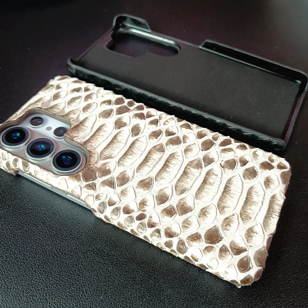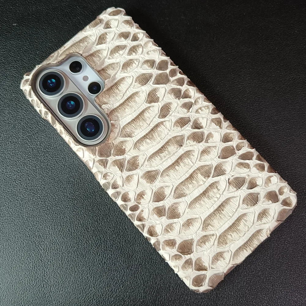 Handmade Genuine Python Leather Case for Samsung Galaxy S26 Ultra S25Ultra Real Snakeskin Half-Wrapped Armor Back Cover