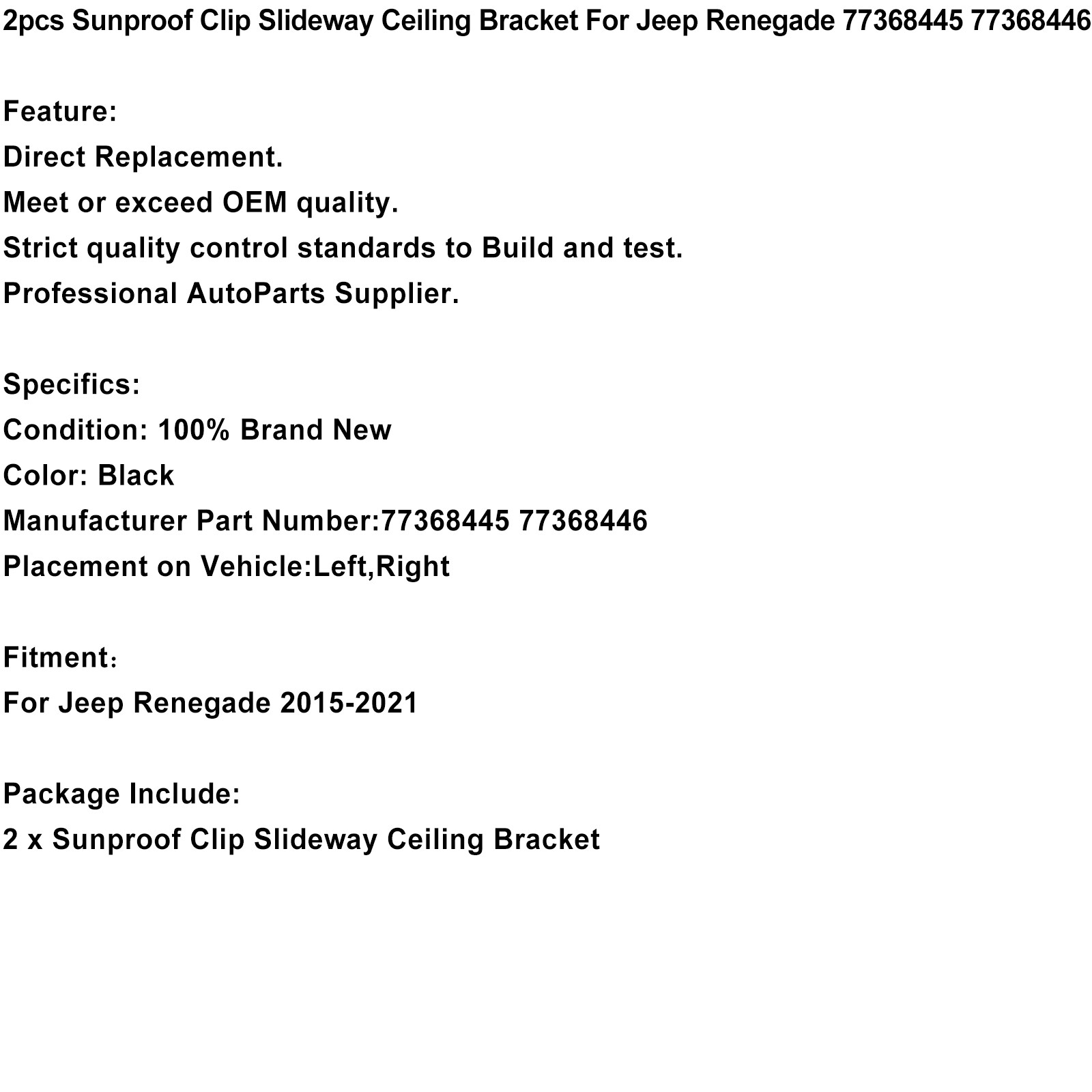 2pcs Sunproof Clip Slideway Ceiling Bracket For Jeep Renegade 77368445 77368446 2 x Sunproof Clip Slideway Ceiling Bracket France 2 PCS Jeep Renegade 77368445 77368446 pince solaire Caractéristiques: Remplacement direct. Atteindre ou dépasser la qualité OEM. Établir et tester des normes strictes de contrôle de la qualité. Fournisseur professionnel de pièces automobiles. Détails: Condition: 100% NEUF Couleur: noir Numéro de pièce du fabricant: 77368445 77368446 Placer sur le véhicule: à gauche, à droite Décoration: Jeep Renegade 2015 - 2021 Le forfait comprend: 2 supports de plafond de diapositives à clip solaire