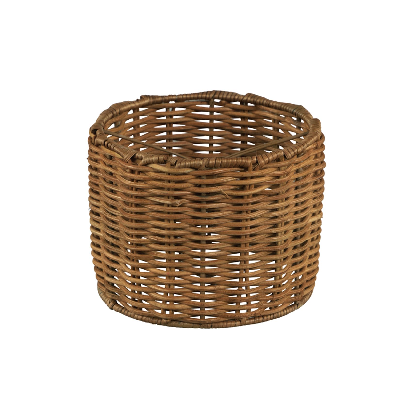 Aspen Creative Item #50503-5Aspen Creative offers a five pack drum shaped lamp shades with clip on fitter.Handmade in natural rattan with weave pattern. The lamp shade dimensions are 5 inch top, 5 inch bottom, 4 inch slant height.Clip-on style fitter designed for bare bulb chandeliers and wall sconces that use candelabra bulbs 40 watt max, bent tip style bulbs not recommended (not included).Our lamp shades are one-of-a-kind due to their handmade nature. As a result of environment and climate conditions, sizes and colors may slightly vary. It's important to note that minor imperfections are not considered faults but rather add to the appeal of each lamp shade. Additionally, the colors of the lamp shades can vary depending on when they were woven. Please note that our lamp shades are made from plant based material (no plastic) and may have a natural, organic fragrance that diminishes over time.Suitable for accent lamps, candle stick lamps, chandeliers, and wall sconces.
