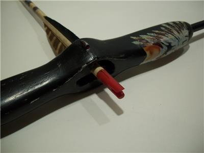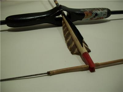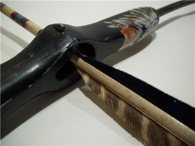 Vintage/Antique RARE/HARD TO FIND/ONE OF A KIND! ARCHERY RECURVE BOW/RIGHT HAND/STEEL LIMBS/ALUMINUM HANDLE RISER COMBINATION, THIS IS A UNIQUE QUALITY CRAFTED RECURVE BOW. LIMBS ARE PROBABLY TEMPERED STEEL (NOT ROUND) 3/8" FLAT TOP & BOTTOMS/ SIDE THICKNESS OF 5/16". NOT A STRING! IT'S A FINE CABLE PRECISION CRIMPED AT THE TIPS. IT APPEARS THAT A BRASS KNURLED RETAINS THE CABLE AND CAN BE ADJUSTED FOR TENSION. THE HANDLE/RISER ALSO SERVES AS HE ARROW REST AND BUILT IN SIGHT WINDOW. LOOK CLOSE. THERE IS A SMALL RED WEDGE FOR A REFERENCE ON SIGHTING. INDIAN CHIEF IMAGE ON TOP PORTION OF RISER. WHOMEVER MADE THIS WAS MORE THAN A BOWYER: HE WAS A MACHINIST, ENGINEER, & BOWYER ALL ROLLED INTO ONE, I'VE HAD IT 30 PLUS YEARS AND COLLECTED ARCHERY ALL MY LIFE AND HAVE NEVER SEEN ANOTHER ONE. I HAVE NO IDEA WHO MADE IT. I HAVE SHOT THIS BOW IN THE PAST, I WILL SHIP THE BOW AS PICTURED. I'M NOT ATTEMPTING TO RELEASE THE CABLE TENSION. MEASURES ABOUT 55-3/8" X 7" X 2".