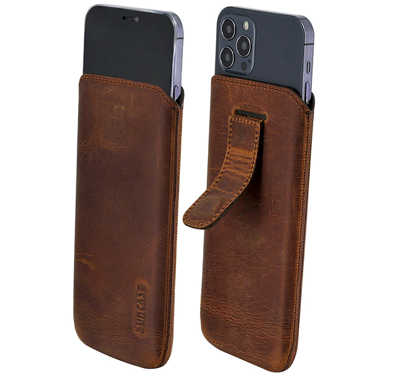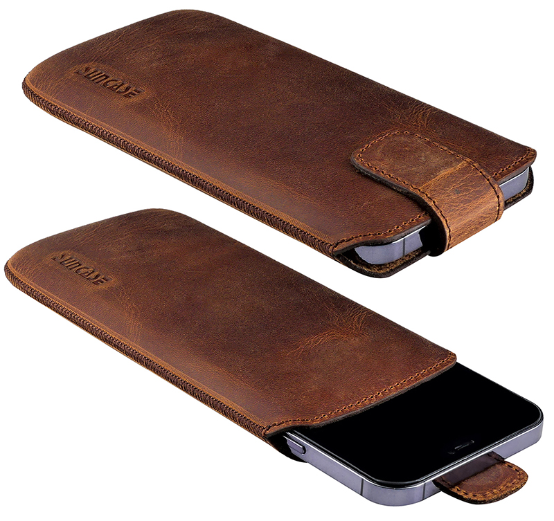 Nos sacs en cuir Suncase sur mesure offrent votre protection optimale de smartphone et peuvent être transportés idéalement dans des vestes ou des sacs à main.
