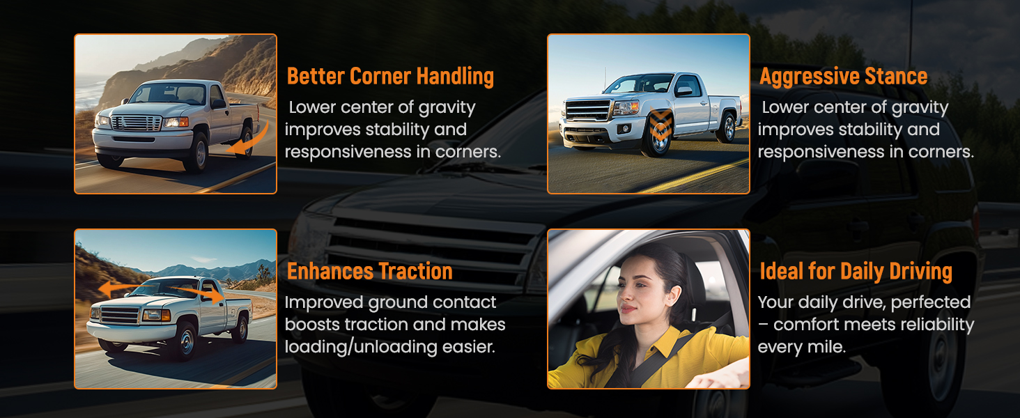 Lower the center of gravity, reduce cornering roll, and increase vehicle stability