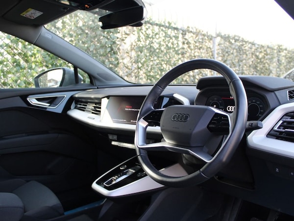 This 2022 Audi Q4 e-tron Sport is a superb example, having been owned by just one person since new. As an electric vehicle, it offers a smooth and quiet driving experience, perfect for navigating both city streets and longer journeys. This Sport trim model comes with a 55 kWh battery, providing a maximum range of 217 miles when new, ensuring you can travel with confidence. The Audi Q4 e-tron Sport boasts impressive charging capabilities. A full charge at home using a 7kW charger takes approximately 7 hours and 30 minutes, making overnight charging convenient. For quicker top ups, it can reach 80% charge from empty in as little as 28 minutes at a compatible public charging station. This electric SUV also features large boot space, offering ample room for shopping, luggage, or sports equipment, making it a practical choice for families and individuals alike. BATTERY HEALTH CHECK AVAILABLE ON REQUEST SPECIALIST EV EXTENDED WARRANTIES ALL VEHICLES FULLY INSPECTED ALL VEHICLES SERVICED & MOTED HPI CHECKED AND CERTIFIED FINANCE AVAILABLE PART EXCHANGE AVAILABLE CLICK AND COLLECT AVAILABLE HOME DELIVERY AVAILABLE BUY ONLINE VIA OUR WEBSITE IN BUSINESS FOR OVER 20 YEARS EST 2000 .110kW DC Charging Capability, 19in Alloy Wheels - 5-W-Spoke - Aero - Graphite Grey - Gloss Turned Finish, 2 USB-C Ports with Charge and Data Functions, 3-Zone Electronic Climate Control, 4-Way Electric Lumbar Support for Front Seats, 7.2 kW Onboard Charger, ABS - Anti-Lock Braking System, AC and DC Charging access Point on the Rear Right, Accent Surface in Gloss Black, Active Vehicle Alerting System - AVAS, Aluminium Look Interior Elements, Aluminium Roof Rails, Anti Theft Locking Wheel Bolts, Anti-Theft Alarm, Audi Connect Navigation and Infotainment Services Plus (3 Year Subscription From New), Audi Connect Safety and Service - e-call, Audi Drive Select, Audi Pre-Sense Front with Pedestrian and Cyclist Recognition, Audi Smartphone Interface, Audi Sound System, Audi Virtual Cockpit - 10.25in Display, Auto Dimming and Frameless Rear View Mirror, Bluetooth Interface, Body Coloured Door Mirrors, Camera Based Traffic Sign Recognition, Cloth Headlining in Steel Grey, Comfort Auxiliary Air Conditioning, Comfort Suspension, Compact e-tron Charging System, Contrast Bumpers in Manhattan Grey Paint Finish, Cruise Control with Speed Limiter, DAB Digital Radio, Door Sills with Aluminium Inlays, Driver and Front Passenger Airbag with Front Passenger Airbag Deactivation, Electric Windows - Front, Electronically Operated Child Locks, First Aid Kit and Warning Triangle and Safety Vests, Folding Door Mirrors with Auto-Dimming Function for Both the Drivers and Passengers Side Electrically Folding - Adjustable and Heated with Built-In LED Side Indicators and Kerb-View Function for Passenger Side, Front and Rear Floor Mats, Front Centre Armrest, Front Seats Manually Adjustable, Front Side Airbags with Head Level Airbag System and Front Interaction Airbag, Gloss Styling Pack, Heated Front Seats, Household Plug Type G - GB, I-Size Child Seat Mounting on the Front Passenger Side and I-Size and Top Tether on the Outer Rear Seat, Industry Plug CEE 32 A-230 V Long and Straight, Inlays - Black, Interior Lighting, Keyless Go, Lane Departure Warning, LED Headlights with LED Daytime Running Lights, LED Rear Lights, MMI Navigation Plus with High Resolution 11.6in Touchscreen Colour Display, Mode 3 Type 2-AC Charging Cable 22kW, Non-Smoking Package, Power Operated Tailgate, Progressive Steering, Projection Light in the Exterior Mirrors, Rear Parking Sensors, Seat Belt Monitoring, Single Frame Grille with a Structured Closed Surface with an Octagonal Shape, Split Folding Rear Seat Bench