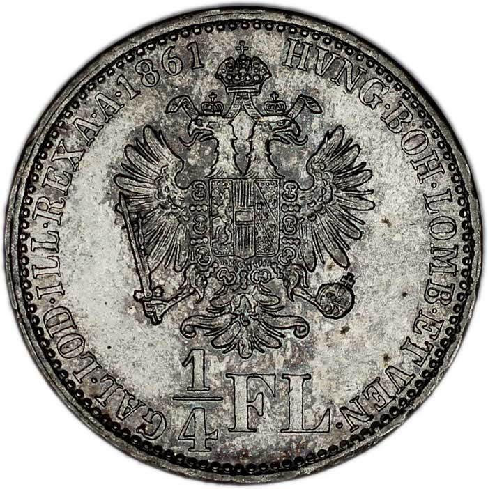 | AUSTRIA coin 1/4 Florin 1861 B Rare date and mint mark !!! | |||